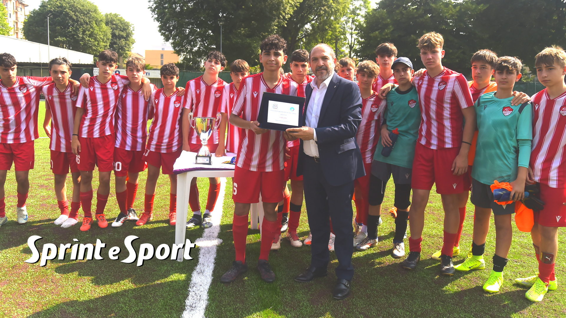 Under 14 Finale Titolo Provinciale, CBS-Rosta 5-2: il capitano Alessandro Zangirolami alza la coppa (foto Cassarà)