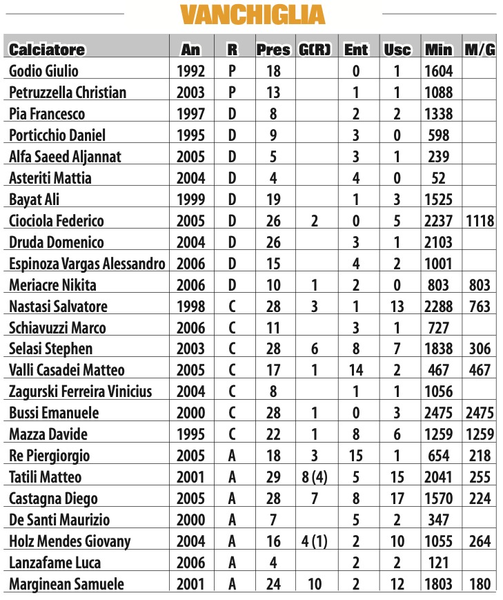 • 4 pagine dedicate a statistiche speciali sulla PRIMAVERA 1, 2, 3, 4.