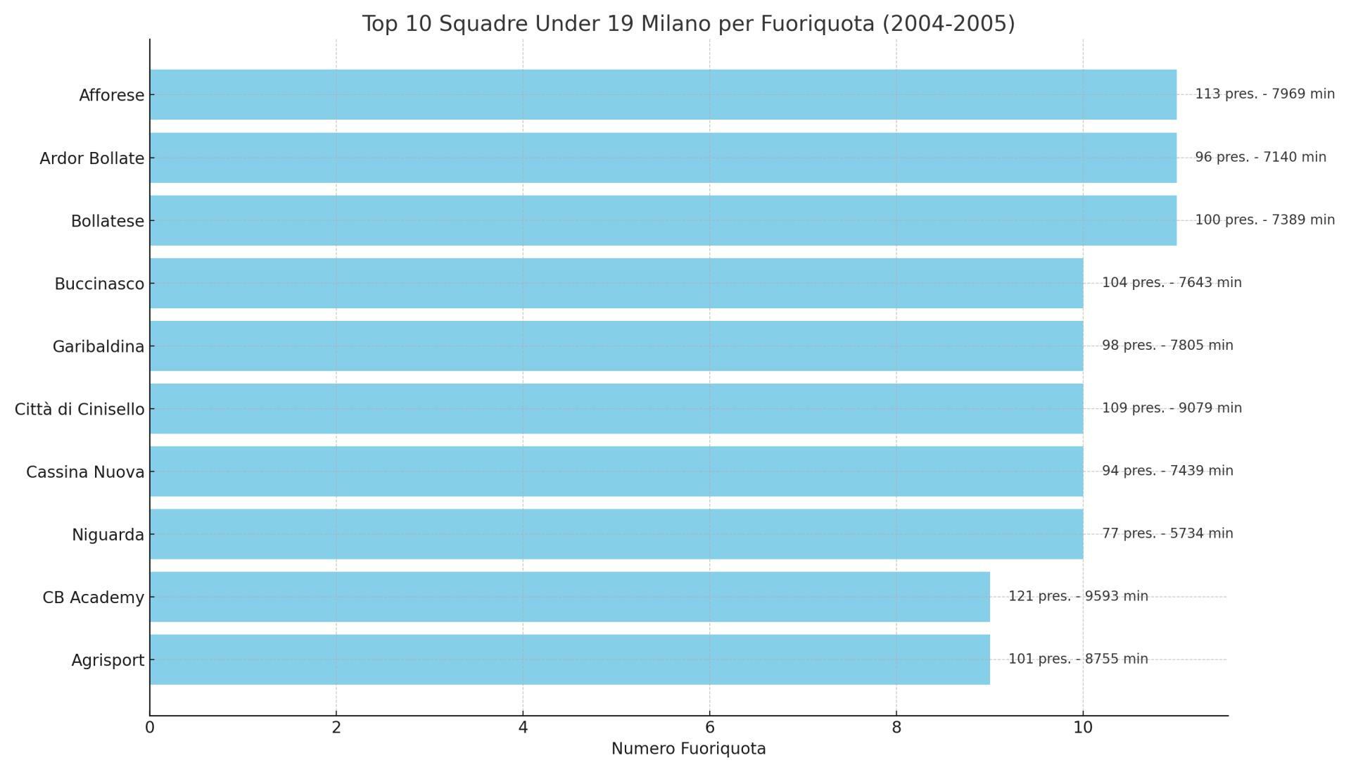 Secondo i dati raccolti, Afforese, Ardor Bollate e Bollatese guidano la classifica delle squadre con il maggior numero di fuoriquota utilizzati: 11 giocatori a testa. Seguono Buccinasco e Garibaldina, entrambe con 10 elementi nati nel 2004 o 2005 impiegati nel corso della stagione.