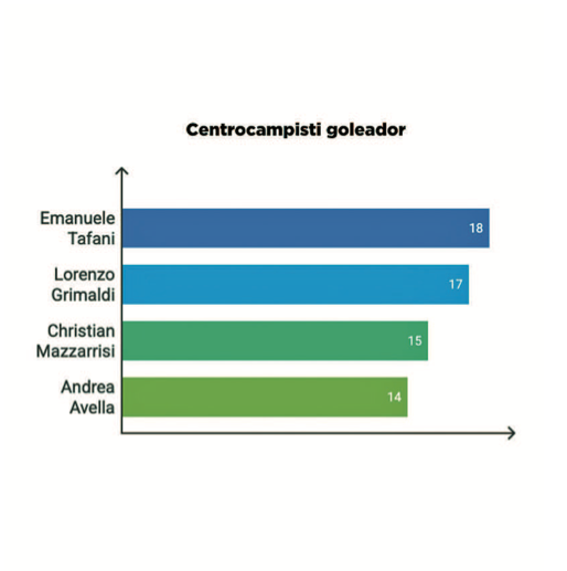 Centrocampisti goleador • Alcuni centrocampisti hanno dimostrato che anche dalla mediana si può incidere pesantemente sul tabellino. Il più prolifico è Emanuele Tafani (Cuneo Olmo), autore di 18 reti in 29 presenze, con ben 4 rigori trasformati e una media di 0,62 gol a partita. Alle sue spalle troviamo Lorenzo Grimaldi (Asti), con 17 gol in 28 gare, solo 1 dei quali su rigore, segno di un’ottima efficacia offensiva su azione. Merita attenzione anche Christian Mazzarrisi (Chisola), che ha segnato 15 gol, di cui 4 dal dischetto, mostrando freddezza nei momenti chiave. Infine, Andrea Avella (Asti) ha realizzato 14 reti in 30 presenze, completando un reparto di centrocampo decisamente offensivo.