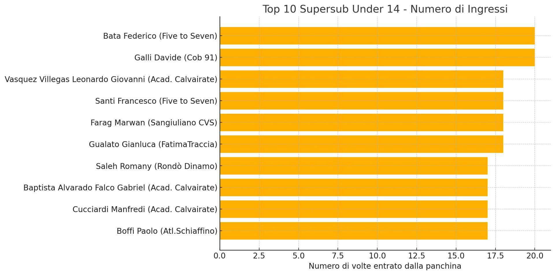 Se entrare a partita in corso non è semplice, farlo con la regolarità di un bomber lo è ancora meno. Eppure tre giocatori dell’Under 14 provinciale di Milano sono riusciti in questa impresa, segnando in doppia cifra pur senza partire quasi mai titolari. Ecco chi sono i tre Super Sub più prolifici dell’intero campionato.