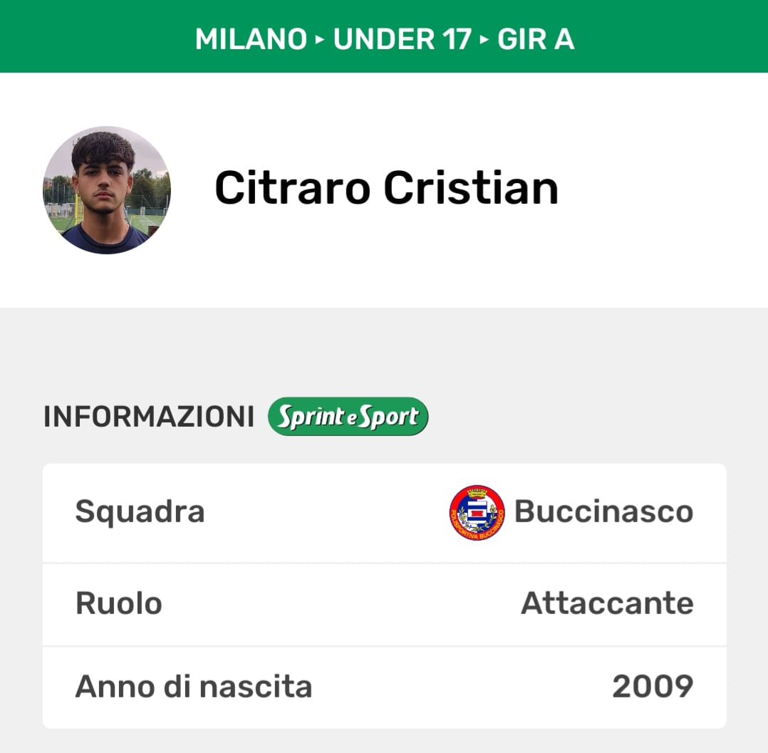 L'avventura di Citraro con il Buccinasco inizia la scorsa estate quando, dopo una vita passata con la maglia dell'Assago, decide di sposare la causa rossoblù, inizialmente nei Regionali ma poi retrocessi nei Provinciali a causa della Coppa Disciplina: «Ho deciso di intraprendere una nuova avventura con il Buccinasco perché dopo anni con l’Assago sentivo il bisogno di cambiare - chiarisce il classe 2009 - specialmente dopo aver trovato poco spazio nella stagione precedente. Il primo impatto qui è stato più che positivo, mi sono subito trovato bene sia a lavorare con il mister sia con i miei compagni». E conviene credergli perchè come al solito il campo ha sempre ragione, e racconta di un giocatore tremendamente decisivo fin da subito.