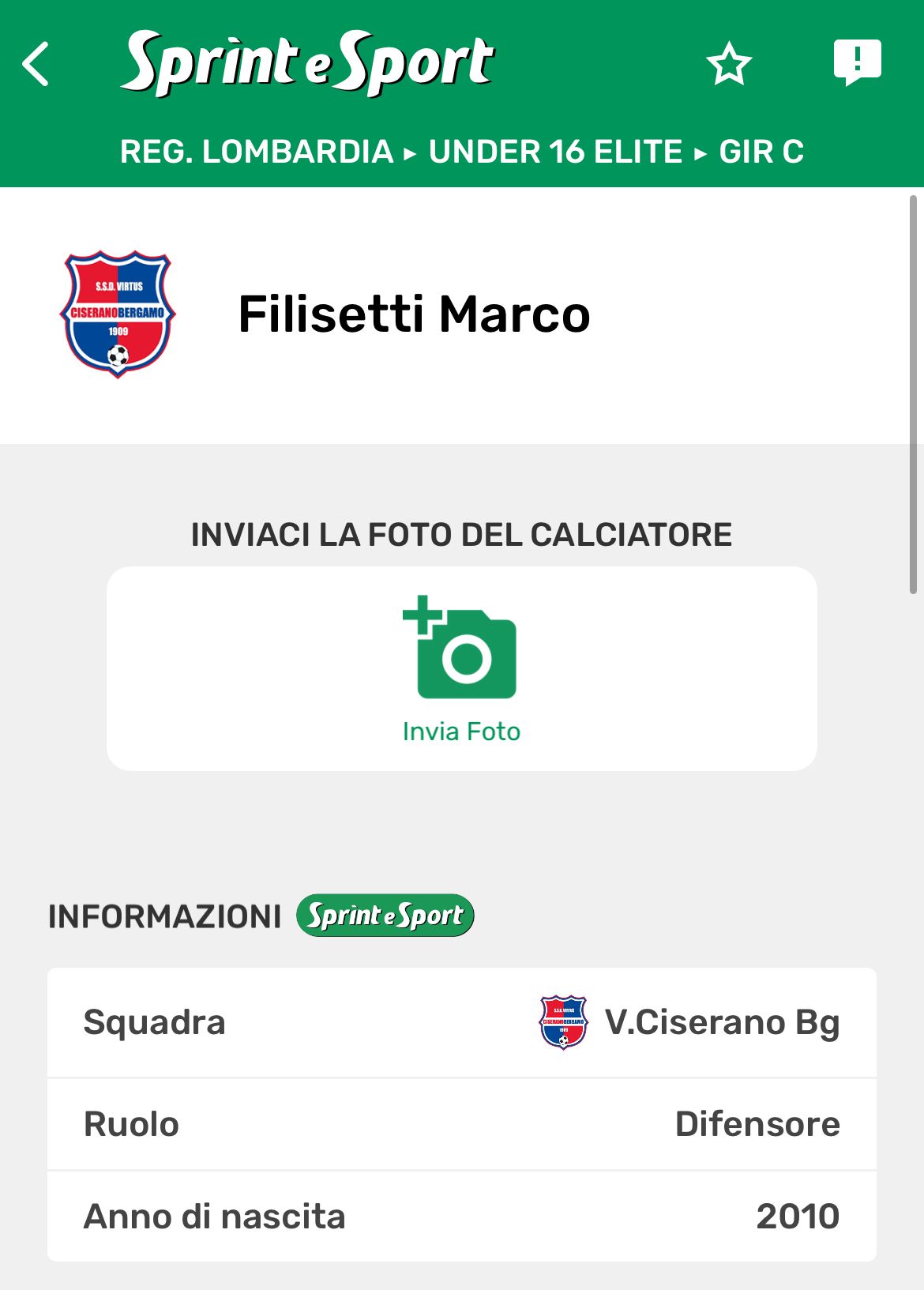 VIRTUS CISERANO UNDER 16 ÉLITE • Marco Filisetti l'autore della rovesciata nel derby bergamasco