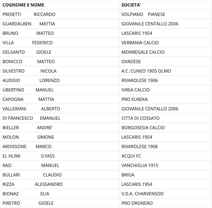 La convocazione per la Rappresentativa Under 19 Piemonte Valle d'Aosta in vista dello spareggio che vale l'accesso alla Uefa Region's Cup. In foto Mattia Capogna