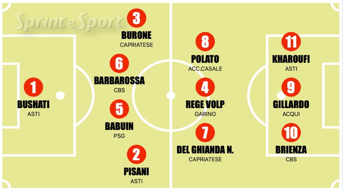 Il Girone E dell'Under 15 è arrivato alla pausa natalizia, e fino ad ora, in queste prime 14 giornate di campionato, a battagliare per il primo posto sono la Cbs e l'Asti, con i rossoneri in vantaggio di 5 punti rispetto agli inseguitori. La corsa per i playoff sta entrando nel vivo, occhio alle possibile soprese. Ecco la formazione dei migliori 11 che si sono presi la scena in questa prima parte di stagione.