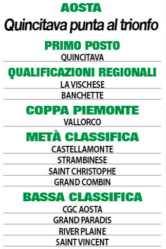 Terminato il girone d’andata, é giunto il momento di pronosticare la possibile classifica finale in attesa del ritorno. Candidata alla vittoria é il Quincitava, forte di un rendimento quasi perfetto. Fresche di un finale di 2025 in crescendo, La Vischese ma sopratutto il Banchette si candidano di diritto a staccare il pass per i Playoff regionali. Nonostante sia attualmente terzo, il Vallorco sebbene abbia costretto la capolista al pareggio, ha vissuto un finale altalenante, motivo per cui una qualificazione in Coppa Piemonte é più che probabile. Metà classifica che verosimilmente sarà occupata dalle varie Castellamonte, Strambinese, Saint Christophe e Grand Combin, ma attenzione al CGC Aosta. Al Grand Paradis ma sopratutto al River Plaine e al Saint Vincent servirá più di un miracolo per raddrizzare la situazione, con le ultime piazze probabili per loro.
