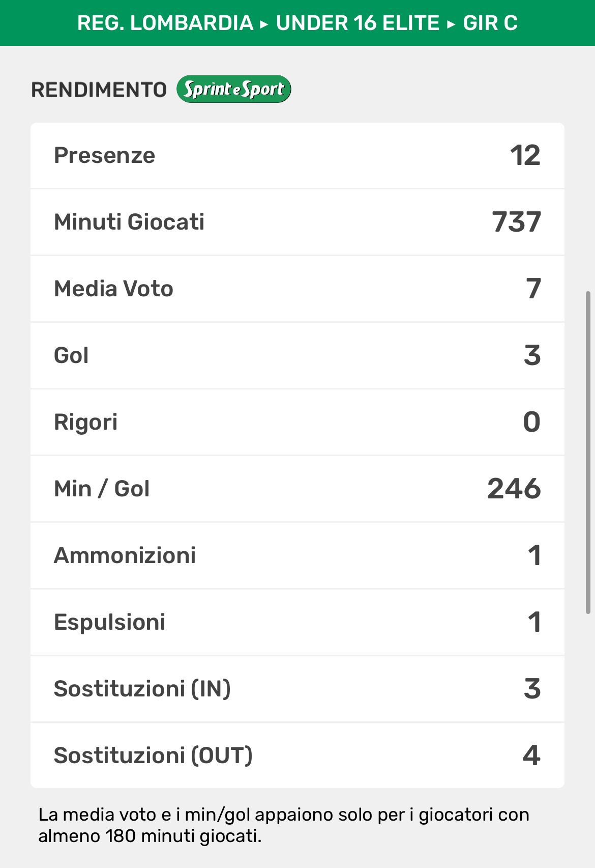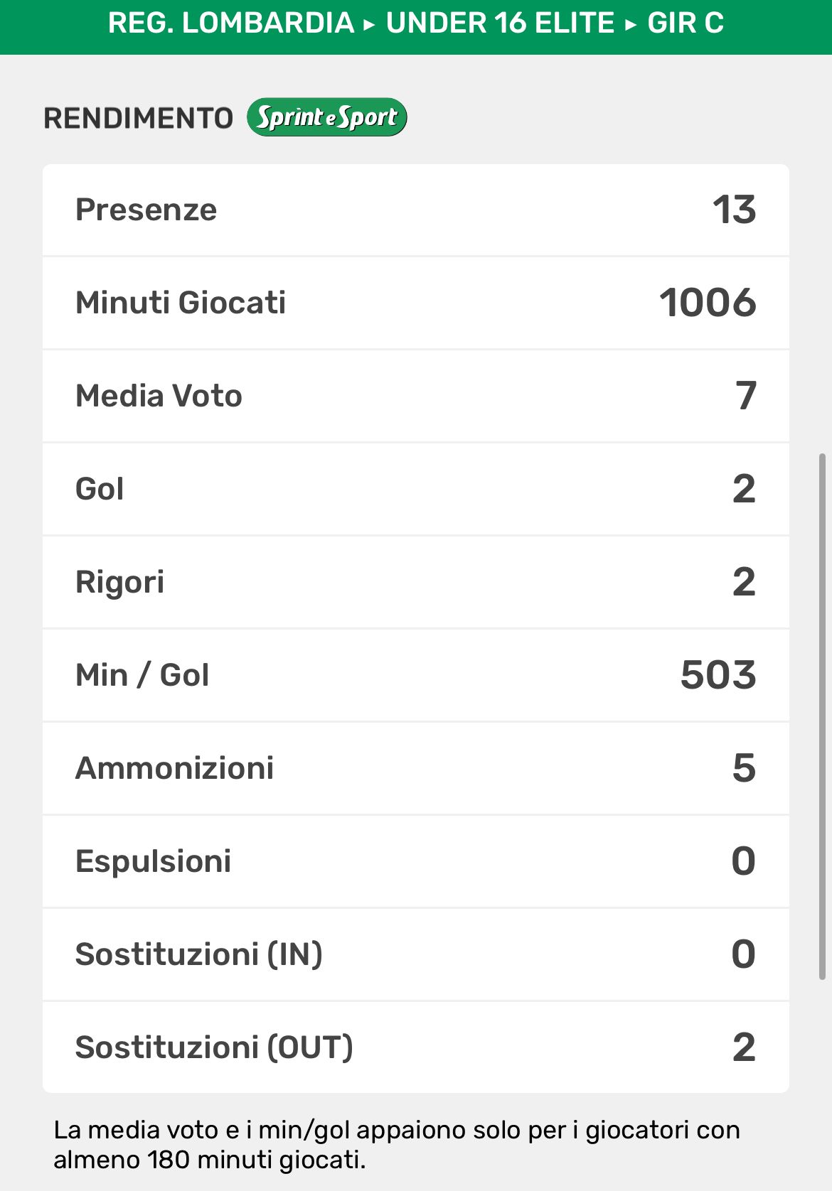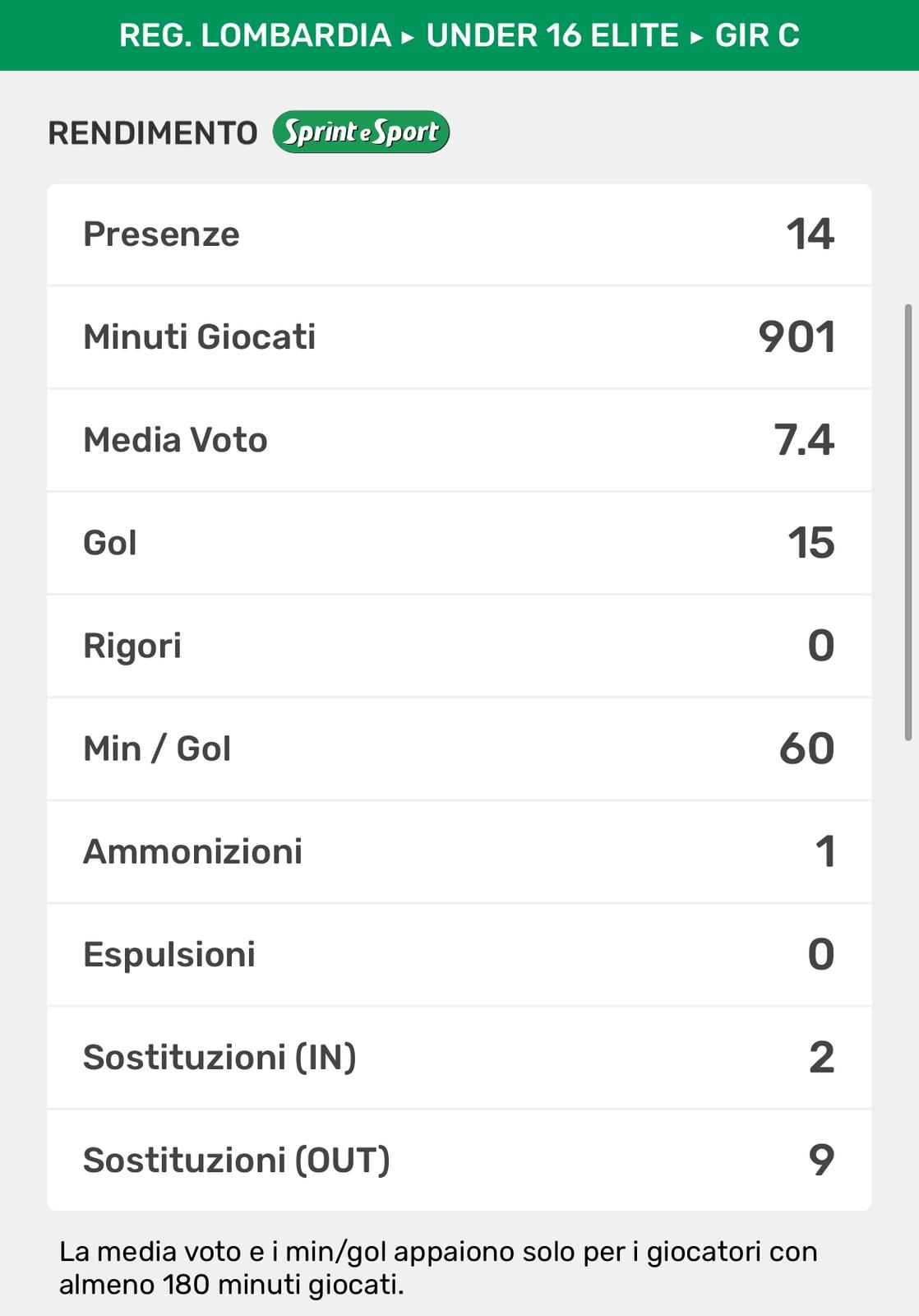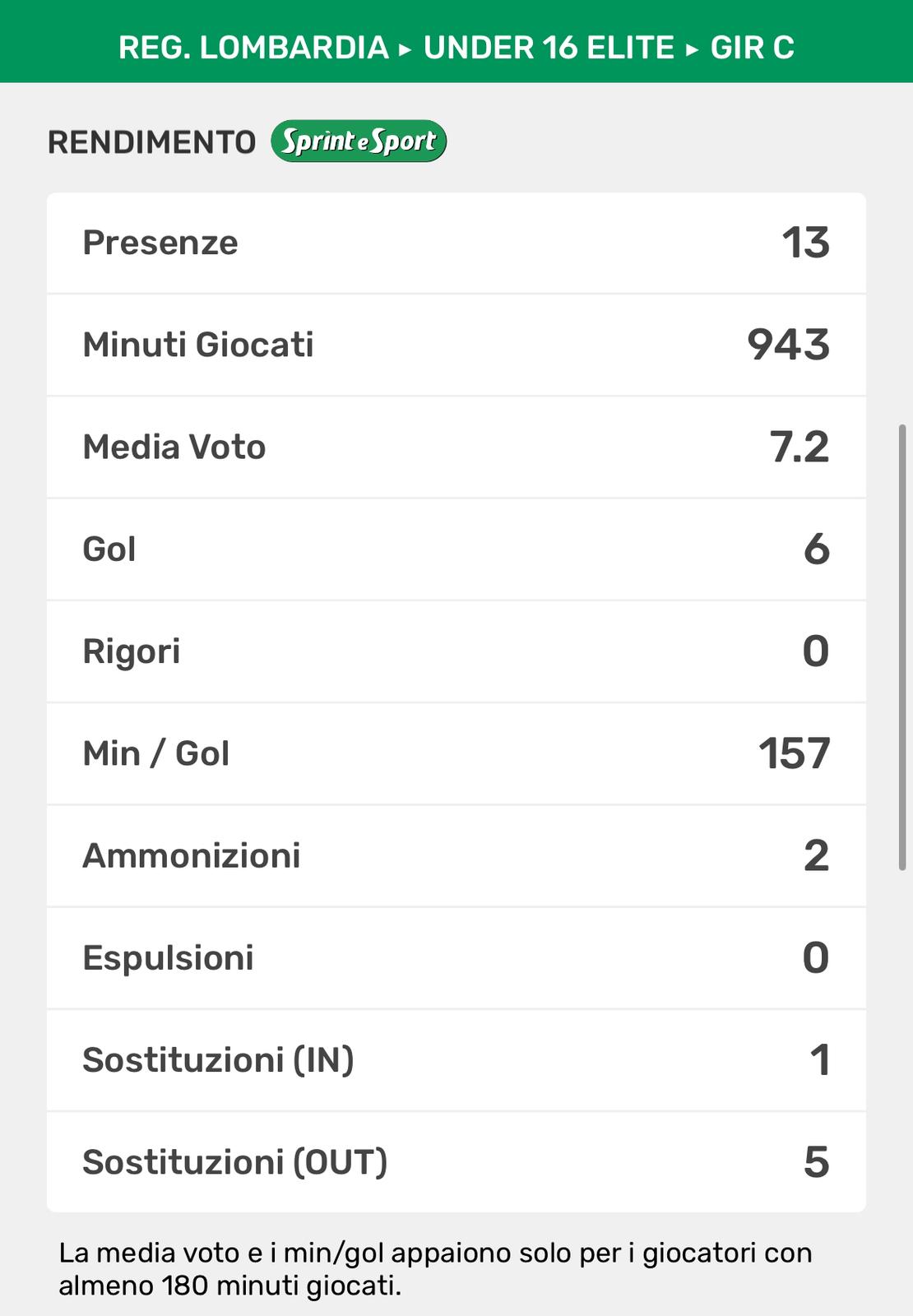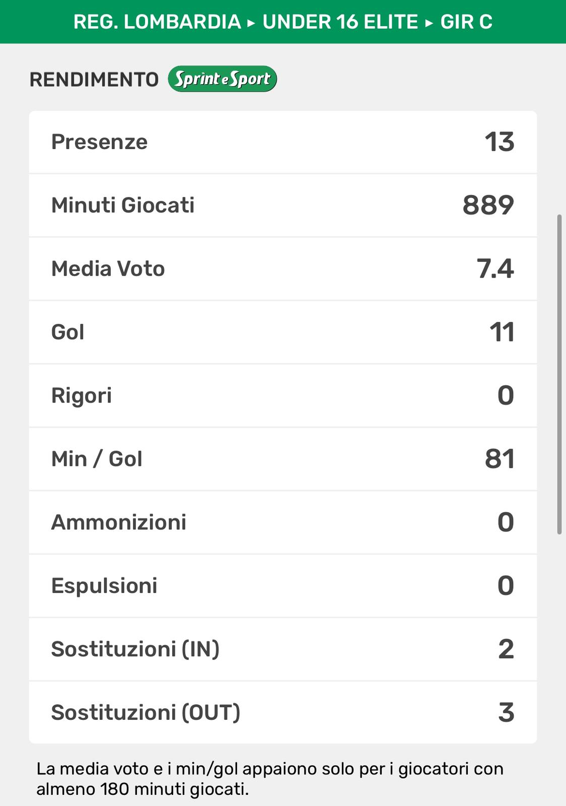 Anche per lui si chiude un anno veramente stupendo. Insieme alla vittoria schiacciante del campionato in Under 15, in quattro mesi al suo esordio in Élite sempre con uno dei suoi padri calcisitici come Luca Corti in panchina, sta stupendo la regione. 11 gol in 13 partite e una media di un gol ogni 81’, praticamente un sigillo a partita per il mago di Biassono, il quale non deve mai avere qualche metro di troppo di campo avanti a sé, altrimenti per le difese avversarie sarebbe un grosso guaio.