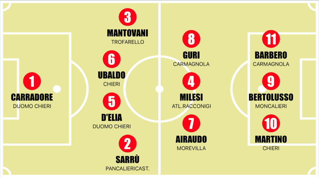 «Bentornato Cri Picci 9», è lo striscione che a Carmagnola hanno dedicato a Cristian Barbero per il rientro dai 5 mesi di squalifica, un ritorno da sogno visto che dopo 4 minuti ha aperto le marcature nella vittoria per 7-1 con la Juventus femminile e che domenica, subentrando dalla panchina, ha segnato il gol partita in Under 15 Regionali contro il Cuneo Olmo (2-1), in pieno recupero. Un’ulteriore soluzione offensiva di alta qualità per la capolista di Enzo Magno, sempre tallonata dal Garino che nella trasferta di Caramagna inanella la sua ottava vittoria consecutiva, vince in goleada anche il Chieri in cui si mette in evidenza Alessandro Martino con una gran tripletta nel giro di 20 minuti. Nelle due gare più equilibrate della giornata, il Morevilla batte 3-2 il Carignano, agganciandolo in classifica, mentre in corso Buozzi a Chieri il Duomo ferma sul pareggio il Moncalieri in una gara molto intensa. Vantaggio Moncalieri con il bomber Nicolò Bertolusso, dopo essersi visto parare un rigore da Lorenzo Carradore, pareggio di Giulio Nai Savina dalla panchina e festa finale per i 50 anni del tecnico Gabriele Costelli. Bernero, Enea Cosenza e capitan Rubiolo firmano la vittoria del Pancalieri, cinquina dell’Atletico Racconigi con Sergio Milesi migliore in campo.