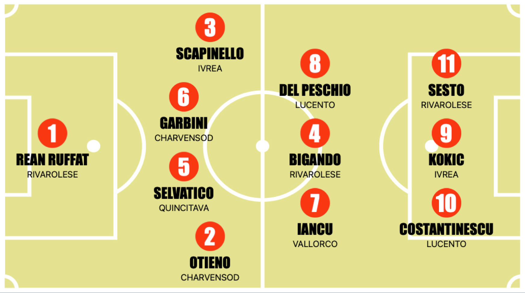 Un risultato che spicca su tutti in questa decima giornata: la Rivarolese è la prima squadra in grado di battere la Volpiano Pianese in campionato. Il gran destro da fuori del difensore ex Torino Alessandro Sesto e il gol di Vittorio Bigando regalano il successo più importante di tutti alla squadra di Christian Sinato. Agli ospiti non basta la rete del momentaneo pareggio da parte di Gabriele Esposito a inizio ripresa. Questa la soddisfazione di Sinato: «Hanno giocato quasi sempre loro con una gran possesso palla. Noi siamo stati ordinati e dietro la linea del pallone con grande attenzione, molto bravi a difenderci bassi. Specialmente nel secondo tempo abbiamo giocato di rimessa e così facendo abbiamo costruito tre occasioni e riuscendo a segnare due volte. Siamo dunque stati particolarmente bravi a sfruttare bene le occasioni avute. Anche il Volpiano è ovviamente ben organizzato ma in questo caso posso dire che siamo stati più bravi noi nonostante un 65-70% di possesso palla a loro favore». Con la capolista che si ferma, sfruttano il passo falso le inseguitrici: vince senza patemi il Lucento in casa e fa lo stesso l’Ivrea in trasferta con l’Academy Vanchiglia. Deve sudarsela invece lo Charvensod sul campo della FC Volpiano. Degni di nota anche gli ultimi due risultati, entrambi 2-1: il Vallorco infligge la terza sconfitta consecutiva al Vanchgilia mentre il QuinciTava si prende i primi punti del campionato battendo in casa l’Aygreville.