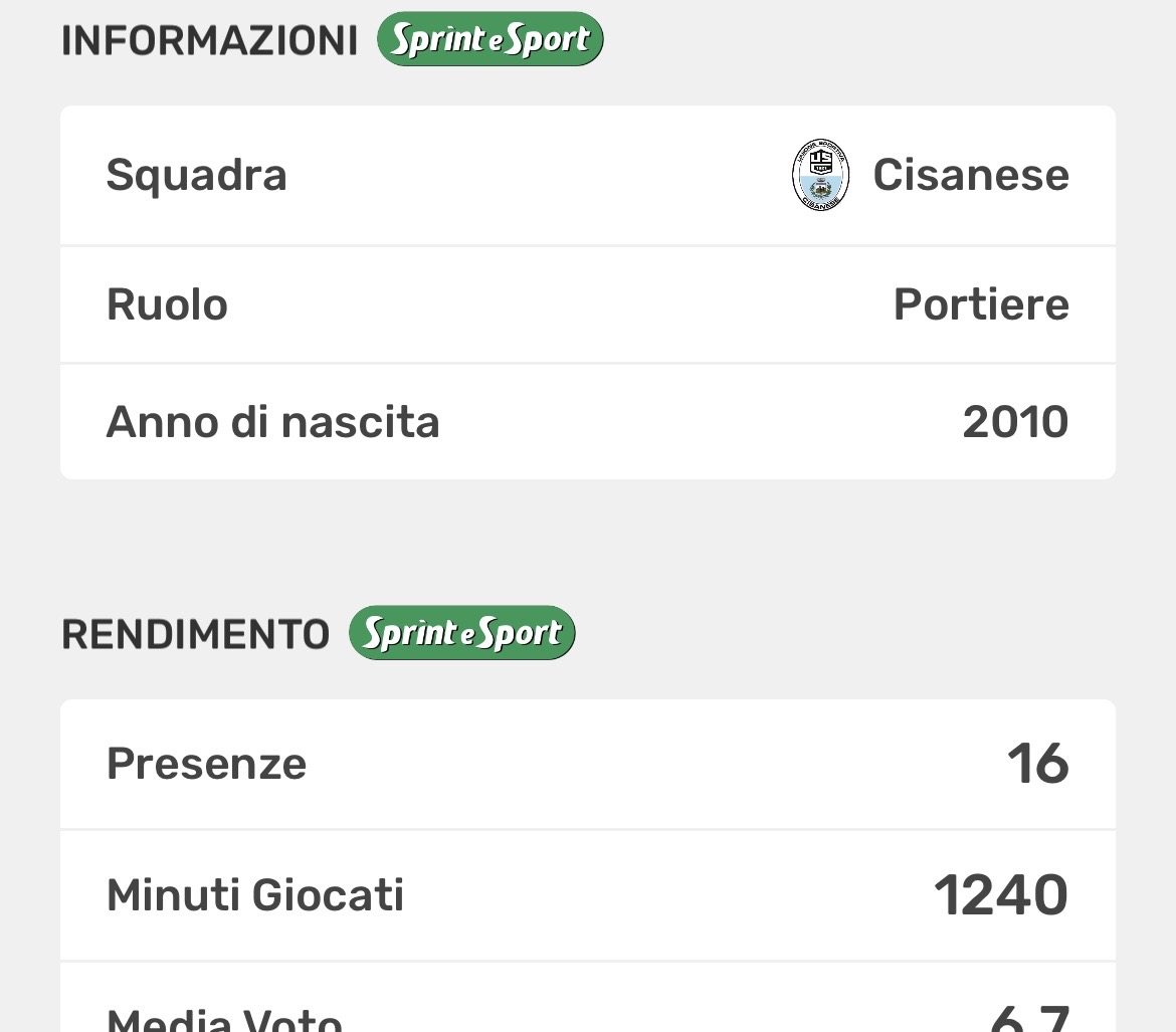 Subito dopo troviamo Martino Mauri, che chiude a 1240 minuti una stagione fin qui improntata alla continuità che, grazie soprattutto ad una difesa molto solida, ha portato la Cisanese ad essere la seconda squadra con meno reti subite.