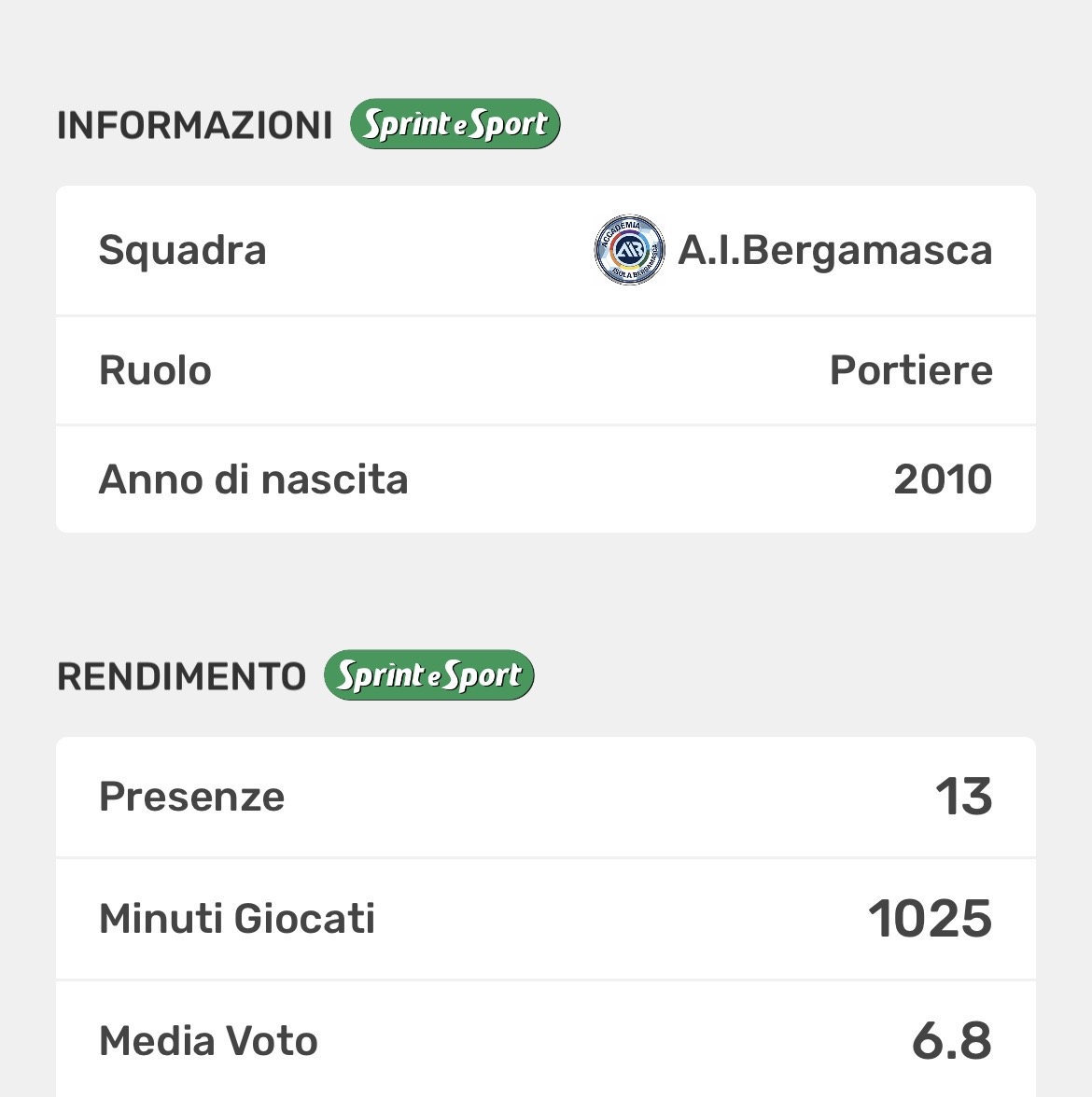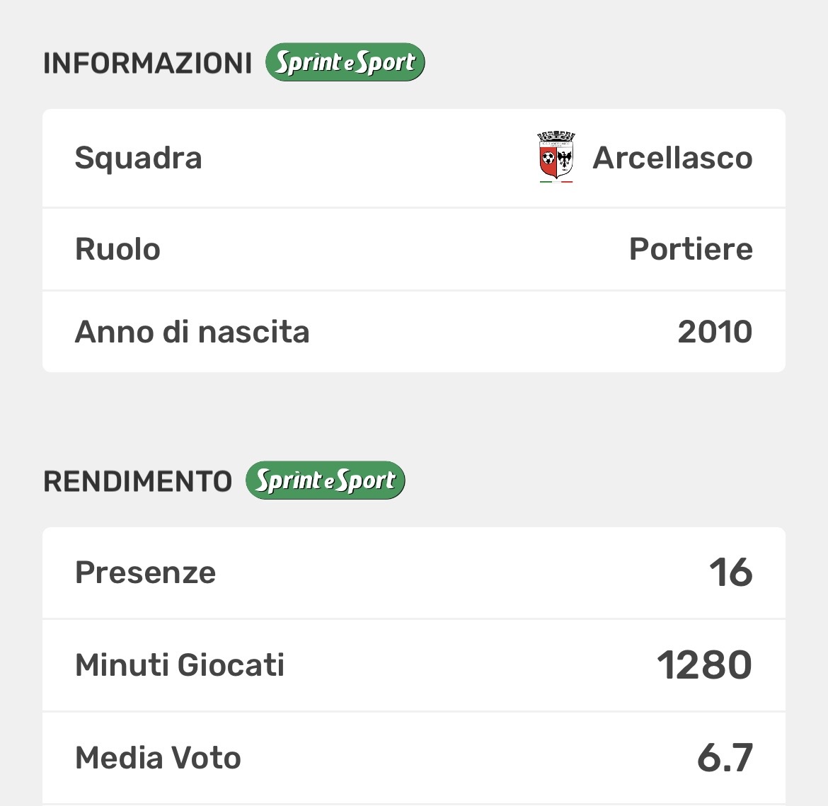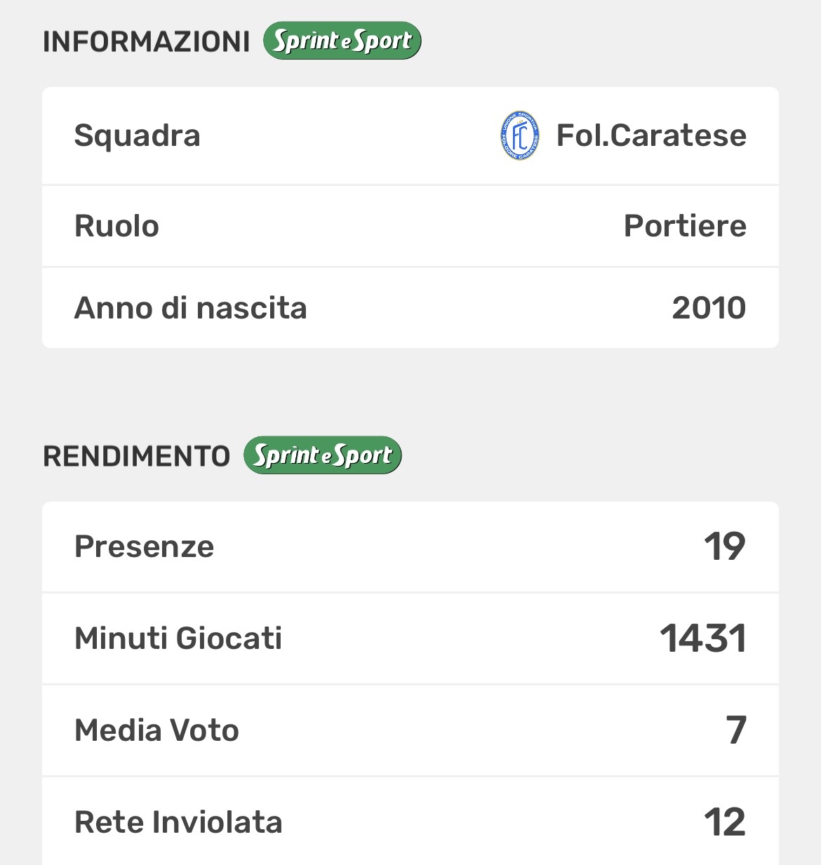 Per Tonelli, invece, si tratta del primo anno a Erba dopo l’esperienza alla Pontelambrese: il portiere si è assicurato il posto da titolare fisso a partire dalla terza giornata, dopo che nelle prime due la porta era stata affidata a Riccioni.