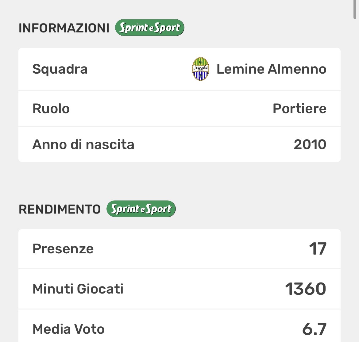 Subito alle sue spalle troviamo Nicola Marotta del Lemine Almenno, con 1360 minuti giocati. Marotta è uno dei portieri più chiacchierati del campionato: nonostante una statura non predominante, ha dimostrato grande sicurezza, concentrazione e una costante attenzione all’errore. Il suo rendimento lo rende senza dubbio uno degli elementi chiave nel percorso verso la salvezza dei bergamaschi.