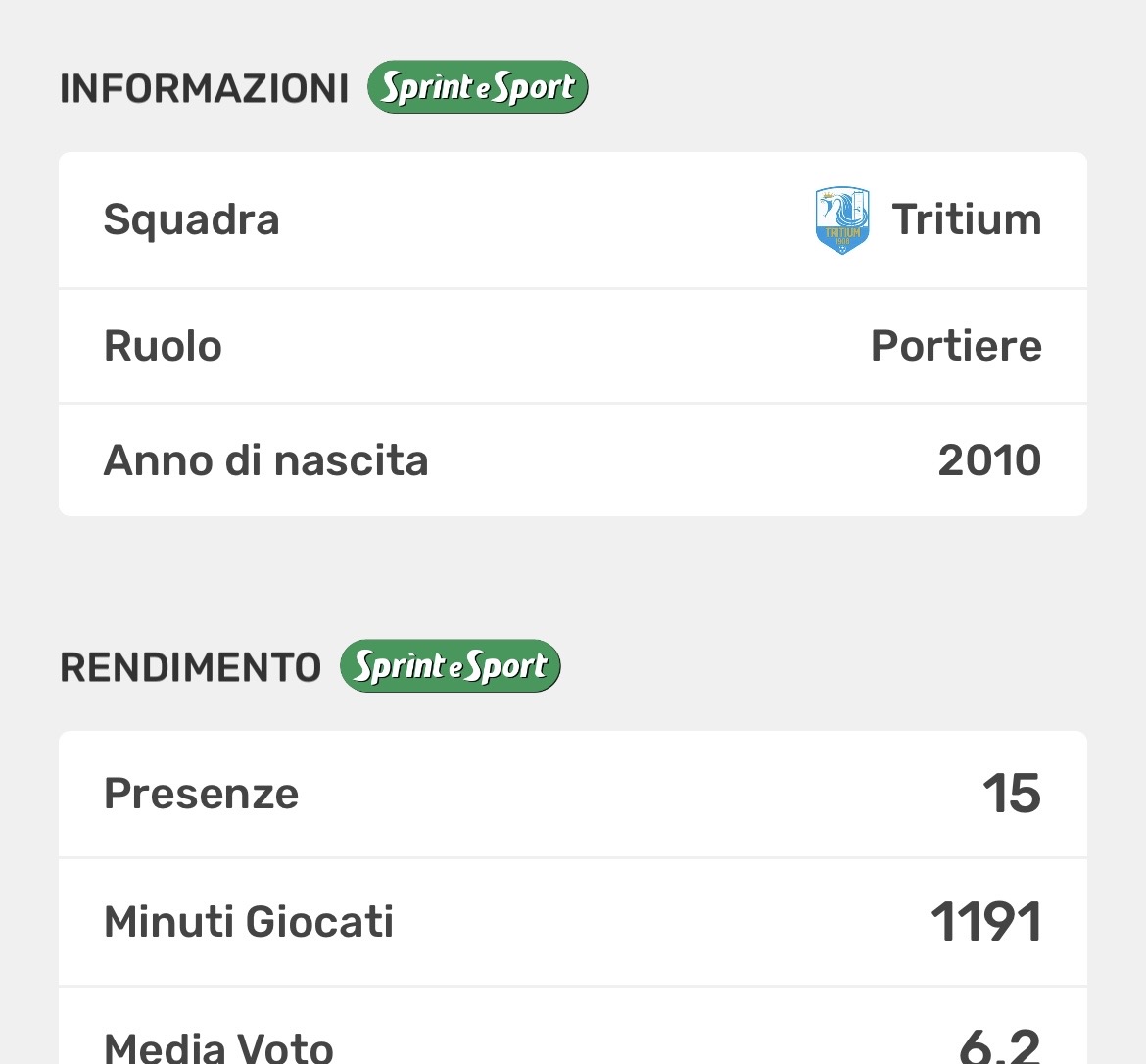 Il primo portiere sotto la soglia dei 1200 minuti è Luis Antonio Mendez della Tritium, con 1191 minuti, seguito da Leonardo Vultaggio della Fiorente Colognola, fermo a 1025 minuti. Vultaggio è un volto nuovo in società: cresciuto nel settore giovanile dell’Atalanta e reduce da una breve esperienza nel campionato Elite con il Ponte San Pietro, ha scelto di rimettersi in gioco con la Fiorente ed è diventato uno dei protagonisti della rosa guidata da mister Personeni. Attento, sicuro e volenteroso, non a caso uno dei più commentati nel suo ruolo.