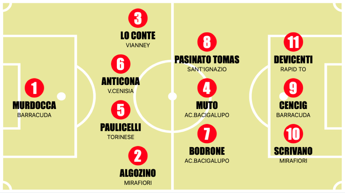 Mancano solamente 7 giornate alla fine del campionato e il Barracuda sembra ormai essere pronto ad essere incornato campione. Vittoria anche in questo fine settimana: 8-0 contro il Real Orione di Angelo Biancorosso (in difficoltà a causa delle numerose assenze per infortunio) grazie alle quattro reti di Lorenzo Cencig e la doppietta di Thomas Rodi. Continua il periodo d’oro per il Mirafiori: quarta vittoria consecutiva per i ragazzi di Roberto Caruso che vincono anche contro il Borgo Vittoria, settimo gol in tre gare per Francesco Caggiati. In gol anche Francesco Algozino, l’arbitro goleador. Il Vianney torna alla vittoria dopo la sconfitta di scorsa settimana contro il Barracuda: 3-0 al Beppe Viola, in gol Gabriele Lo Conte, Gabriele Guidone e Niccolò Riggi. Pazza partita tra Torinese e Academy Bacigalupo: 2-2 in rimonta per gli oroneri nel secondo tempo grazie alle reti di Tarik Lassiri ed Edoardo Paulicelli. Frena ancora la Virtus Cenisia contro il Rapid Torino (1-1). I viola non riescono ancora ad ingranare in questa ripresa di campionato dove hanno raccolto appena 4 punti su 18 disponibili, complicando, di fatto, la loro posizione in classifica e mettendo a rischio la partecipazione ai playoff, con Torinese, Vianney e Victoria Academy pronte a rubare la terza posizione. Quarta vittoria per il Sant’Ignazio che vince contro il Bacigalupo di Carlo Implicito. I giallorossi superano così i nerazzurri in classifica grazie alle reti di Lorenzo Marcolongo, Massimiliano Scopelliti e Daniel Pasinato. La 19esima giornata, però, non si conclude qui. Grande attesa per la partita di martedì sera tra Victoria Academy e KL Pertusa, con i padroni di casa che sono chiamati a confermare il trend positivo del girone di ritorno per poter sperare nell’aggancio al terzo posto.