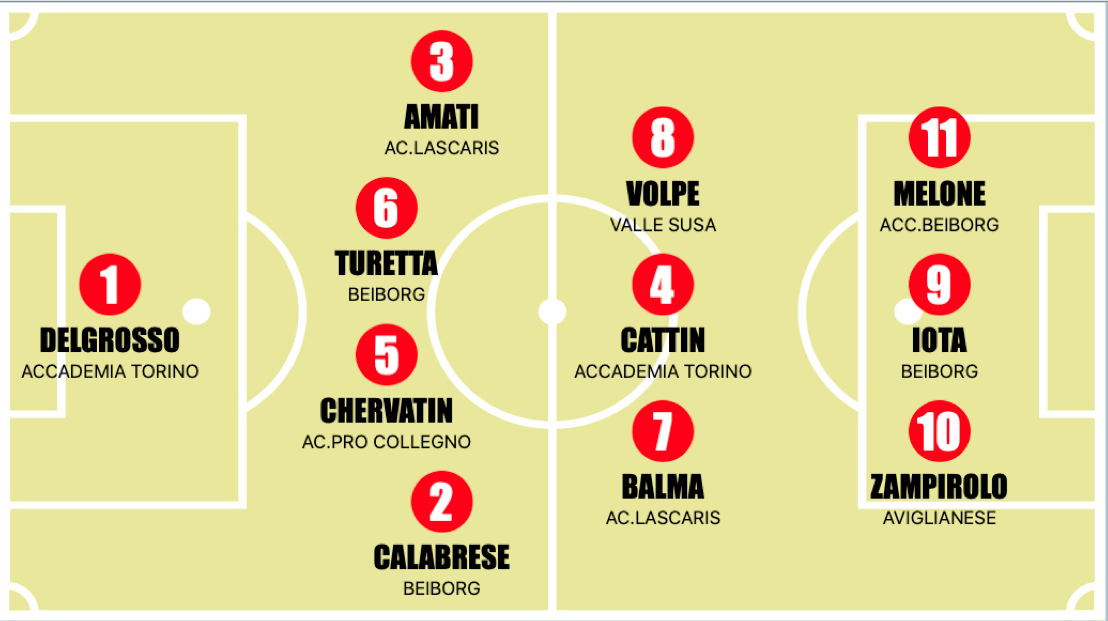 Academy Lascaris padrona incontrastata del Girone D, i ragazzi di Massimo Ponte mettono un altro tassello fondamentale alla corsa per il titolo. Leonardo Mattia Balma e Andrea Caffo decidono una complicata trasferta a Collegno contro l’Academy. Ribaltato il risultato dell’andata dove il Lascaris perse di cortomuso per il gol di Erik Piancone, tre punti che consegnano il +5 su un Olympic Collegno in crisi totale: Ezio Stoppa non riesce a vincere all’esordio contro l’Accademia Torino, i granata possono festeggiare con le reti di Filippo Cattin su calcio di rigore e Raoul Cociorva alla fine del primo tempo. Il ritorno in grande stile di Elia Zampirolo trascina l’Aviglianese nella vittoria contro il Pianezza per 4-0, dopo l’eperienza regionale il numero 10 ritorna nella sua squadra d’origine e fa quello che sa fare meglio, gol. Semplicemente devastante Kevin Iota, il suo Beiborg vince 13-0 e il “nueve” segna 8 gol, le sue intenzioni sono chiare: portare a casa la qualificazione ai playoff e vincere il titolo di capocannoniere, non solo del Girone D, ma di tutti i gironi di Torino. Lotta serrata con Issouf Ouattara del Rebaudengo ma i gol odierni indirizzano inesorabilmente la sfida verso il centravanti gialloverde. Nelle ultime due sfide il Valle Susa vince per 6-0 contro il Villarbasse che non riesce a dare continuità al pareggio di settimana scorsa e l’Accademia Beiborg che vince nel finale con il solito Lorenzo Melone in una pazza sfida al Tetti Rivalta. Riposo per il Go Grugliasco che tornerà in campo la prossima giornata contro l’Olympic Collegno nell’anticipo del venerdì.