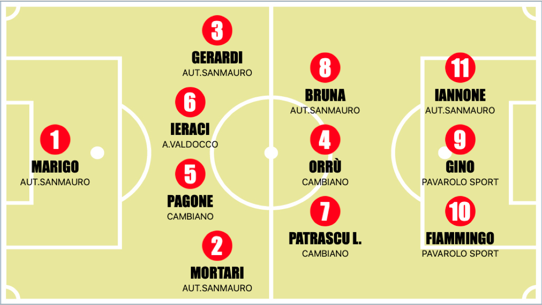 La pioggia ferma quasi tutto il Girone, a disputarsi sono solo due match: Cambiano - Pavarolo finito 3-3 e Autovip San Mauro - Auxilium Valdocco 3-0. La prima partita è stata a dir poco spettacolare con i padroni di casa che hanno aperto le marcature con la rete di Lorenzo Patrascu (autore di sei gol in diciotto partite), subito, dopo appone a8’ minuti ecco arrivare il raddoppio di Alessandro Orrù che sembra indirizzare la gara verso la vittoria dei ragazzi di Rocco Panetta, ma gli ospiti non ci stanno, decidono di non farsi demoralizzare dalla numerose assenze e si mettono d’impegno per provare a riportare in so binari giusti la gara. Al minuto 28’ ecco arrivare la rete di Federico Fiammingo che accorcia le distanze e porta il risultato sul di 2-1 alla fine dei primi 35’ minuti. Nel secondo tempo arriva il bomber che non ti aspetti: Federico Gino, che solitamente fa il portiere, realizza una doppietta strepitosa e importantissima che permette ai ragazzi di Massimo Battistiello di portare a casa un punto che, visto come si era messa la gara, vale tantissimo. A San Mauro, i gialloblù non si fanno intimorire dalla pioggia e calano il tris contro l’Auxilium Valdocco: ad aprire le marcature è Mattia Bruna che realizza la sua settima rete in questo campionato, mentre nel secondo tempo Emanuele Iannone prende per mano la squadra e realizza due reti in sette minuti stabilendo così il risultato finale sul 3-0. I ragazzi di Danilo Rossi si portano momentaneamente in vetta alla classifica, aproffitando del rinvio di Pecetto - San Luigi Santena. Tanto rammarico per il rinvio del big match tra Absolute La Loggia e Onnisport che poteva decretare una scossa decisiva alla classfica.