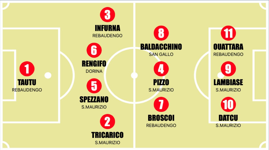 La pioggia si abbatte anche sul Girone C, anche qui come nel Girone B solo due partite si sono giocate: Dorina - Rebaudengo, finita 0-8 e San Gallo - San Maurizio terminata 1-4. Il Reba ancora una volta si conferma una delle squadre migliori di tutti i Provinciali con i soliti protagonisti Issouf Ouattara e Alessio Broscoi. Il primo mette a segno una tripletta che gli permette di arrivare a quota 38 gol stagionali a sole tre marcature di distanza del suo rivale Kevin Iota. Alessio Broscoi, invece, è nel suo miglior momento, non solo è arrivato a 20 reti in questo campionato, ma è anche autore di sette gol nelle ultime quattro partite: un bottino che lo mette di diritto tra i migliori giocatori del momento. Per gli ospiti sono andati a rete anche Alessandro Infurna, Nicolò Sica e Adam Alais. Tutto facile anche per il San Maurizio che vince in trasferta contro il San Gallo grazie alla doppietta dalla panchina di Lorenzo Lambiase, a segno Datcu che mette a segno il suo settimo timbro in questo campionato. Per i padroni di casa, invece Alessandro Onestini trova la via del gol, per essere precisi il suo undicesimo in questo campionato. Con questa vittoria il San Maurizio mantiene viva la speranza per i play off pareggiando i punti del Venaria, costretto a riposarsi in questa giornata a causa del maltempo che ha colpito tutto il Piemonte. In attesa di sapere quando si giocheranno i recuperi di tutte le partite l’appuntamento è alla prossima settimana con il big match tra Rebaudengo e Chivasso, una partita che promette tanto spettacolo e chissà, anche qualche sorpresa per la classifica.