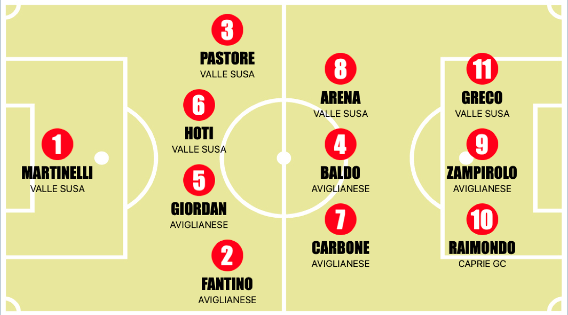 L’allerta meteo si abbatte anche qui, per uno scherzo del destino anche in questo Girone a giocarsi sono solo due partite, ovvero quelle tra Aviglianese e Capire GC e Valle Susa Go Grugliasco. Nella prima partita l’Aviglianese riesce a tornare alla vittoria dopo la sconfitta fuori casa di scorsa settimana contro il Tetti Rivalta. MVP del match Elia Zampirolo che da quando è ritornato tra le fila degli arancioneri sembra aver ritrovato la forma che tanto lo ha caratterizzato nel corso della passata stagione: per lui sono sette centri in appena tre presenze, un bottino straordinario che lo vede segnare un gol una volta ogni trenta minuti. Una media gol degna dei migliori palcoscenici europei. Grazie a questa vittoria i ragazzi di Matteo Piacenza si mantiene stabile nel quartetto formato da Pianezza, Vallesusa e Accademia Torino, tutte raccolte in appena quattro punti. A Susa i padroni di casa vinco e convincono contro il Go Gruglaisco. Nel primo tempo, più combattuto, i biancorossi aprono le marcature grazie Gioele Greco, che arriva così a 9 reti in questo campionato. Nella ripresa, il Valle Susa cambia marcia e si impone grazie alle reti di Alessandro Volpe, Samuel Pastore e Filippo Rubano e nuovamente Gioele Greco, MVP della partita. Appuntamento alla prossima settimana dove ci saranno molti match interessanti come Tetti Rivalta - Academy Lascaris e Olympic Collegno - Valle Susa. Attenzione anche a Kevin Iota, che dovrà recuperare e segnare ancora se vuole mantenere il primato della classifica marcatori di tutti e quattro i gironi.
