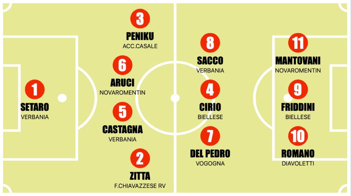A due giornate dalla fine il campionato ha già emesso il suo verdetto principale: il titolo è del Baveno, che da settimane si gode il meritato pasillo de honor nelle ultime uscite stagionali. Alle spalle dei campioni, però, la corsa è tutt’altro che chiusa. La lotta per il secondo posto è più accesa che mai e vede protagoniste Fulgor e Biellese, pronte a giocarsi tutto negli ultimi 180 minuti. A rimescolare le carte ci hanno pensato i Diavoletti, ancora una volta avversario durissimo per la Fulgor. Dopo l’1-1 dell’andata arriva infatti lo stesso risultato anche al ritorno: Gallo porta avanti la Fulgor, ma Romano ristabilisce l’equilibrio e firma un pareggio che pesa nella corsa alla piazza d’onore. Un risultato accolto con entusiasmo dalla Biellese, che davanti al proprio pubblico travolge il Cameri e aggancia proprio la Fulgor a quota 53 punti, riaprendo completamente la sfida per il secondo gradino del podio. Se la zona alta resta incandescente, non è da meno la lotta salvezza. Il Gozzano conquista un punto prezioso contro il Bulè grazie alla rete di Iseppato e mantiene due lunghezze di vantaggio sulla zona rossa. Più delicata invece la situazione dell’Ivrea, che cade contro il Verbania e ora rischia seriamente di restare fuori dalla salvezza diretta. Nel resto della giornata arrivano anche segnali positivi da Novaromentin e Juve Domo: i primi superano il Vogogna, mentre i granata strappano un buon pareggio contro il Casale.