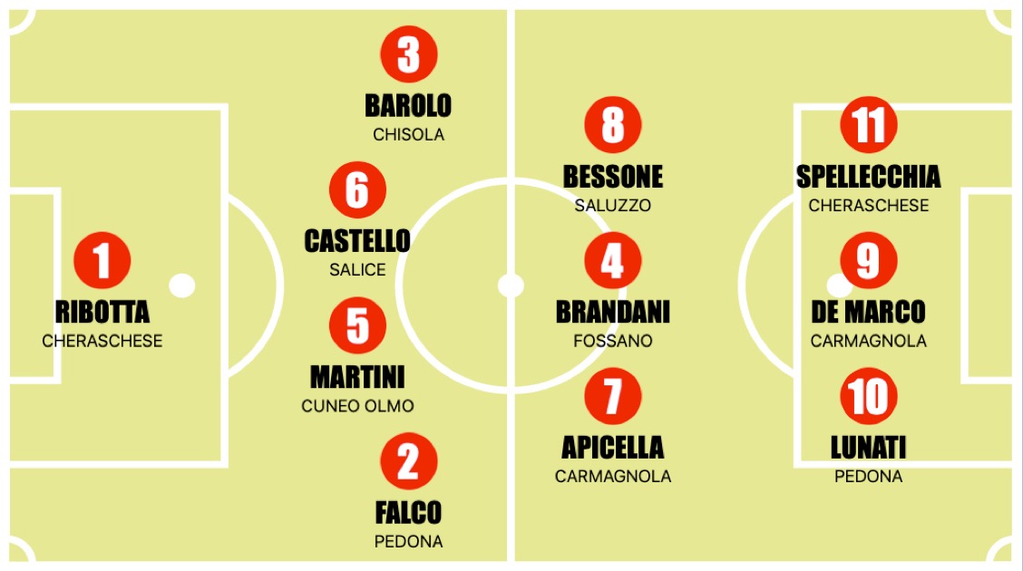 Il girone D regala un pomeriggio quasi surreale, dove il risultato più clamoroso diventa anche il simbolo della distanza tra chi ha già vinto tutto e chi continua a inseguire. Il Chisola, già campione aritmetico, trasforma la sfida con il Piossasco in una vera e propria valanga: una grandinata di reti che scuote il girone e ribadisce, se ce ne fosse ancora bisogno, il dominio assoluto dei vinovesi. Dietro la capolista, però, la battaglia è tutt’altro che chiusa: due posti in Elité per quattro squadre. Il Carmagnola risponde presente travolgendo il Busca con una prova di grande concretezza del solito e intramontabile DeMarco. Tra Saluzzo e Fossano va in scena un 3-3 vibrante, ricco di capovolgimenti e tensione: un punto che rallenta la corsa ospite e non facilita l’arrivo. Il Cuneo Olmo conquista tre punti pesantissimi sul campo del Salice, con la rete di Martini nel finale di gara, mentre il Centallo è fermo ai box per il turno di riposo. Per un solo posto salvezza, invece, ci sono tre squadre: il successo del Pedona sul Pinerolo, già salvo, concede un allungo fondamentale; si aggiungono il Salice, fermato in casa dai cuneesi, e la Cheraschese, che passa con autorità sul campo del TettiRivalta trascinato da un super FrancescoSpellecchia. Il titolo ha già trovato il suo padrone, ma il resto del campionato è una miscela esplosiva: per il podio si sgomita centimetro dopo centimetro, mentre in fondo ogni punto pesa come un macigno. Nel girone D nessuno può permettersi di rallentare.