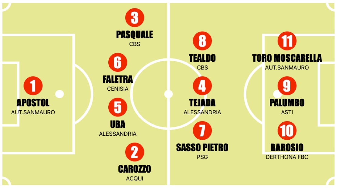 Il campionato entra nella fase in cui ogni partita pesa come piombo e i risultati iniziano a fare rumore. La ventiquattresima giornata del girone E si trasforma così in una sorta di spartiacque emotivo, tra chi alza il volume delle proprie ambizioni e chi prova a restare aggrappato al treno che conta. A dettare il ritmo è ancora la CBS, che travolge lo Sca Asti con un eloquente settebello: una dimostrazione di superiorità costruita con intensità e continuità, capace di mandare un messaggio chiaro alla diretta avversaria. Vittoria dal peso specifico enorme per il Cenisia, che nello scontro diretto supera il Chieri e mantiene vive le proprie speranze: un successo che vale più dei tre punti, perché mantiene le distanze e permette di continuare a lottare. Tutto aperto per il terzo posto e l’ultimo slot per le Finals: l’Acqui passa con decisione sul campo dell’Ovadese grazie alle reti di Cardinale, Carozzo e Sconfienza; mentre arriva un colpo esterno di grande peso per l’Asti, che espugna il campo del PSG 2-3 al termine di una sfida vibrante: doppio vantaggio ospite annullato dai padroni di casa ma nel finale è il rigore di Palumbo a regalare il successo ai galletti. In ottica salvezza, il Derthona liquida il Gassino senza concedere margini; l’Autovip San Mauro piega la Novese con un guizzo decisivo; infine, tra Alessandria e Viguzzolese, i grigi si impongono 3-2 al termine di una gara giocata sul filo dei nervi e risolta dalla sigla di Uba.
