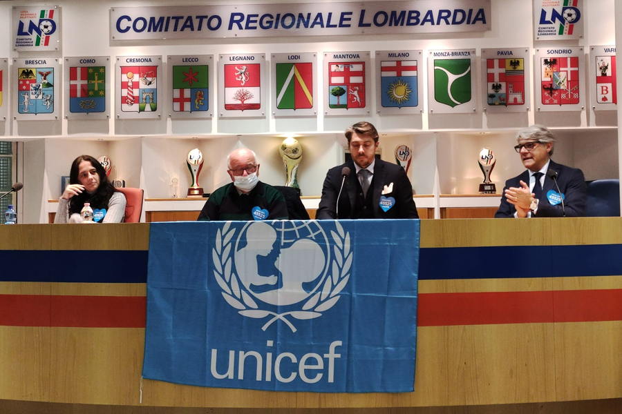 Il presidente Carlo Tavecchio. In rappresentanza del Comitato Regionale Lombardia ha preso parola il Presidente Carlo Tavecchio, il quale ha voluto sottolineare l’importanza della partnership raggiunta ed il piacere di averla messa in piedi in così breve tempo: «Parlare di Unicef è come parlare del mondo. La Figc e la Lnd sono da sempre in prima fila per sensibilizzare i rapporti con il mondo giovanile, per questo sono molto entusiasta di questa iniziativa. Parlando di diritti dei bambini ci sarebbe da discutere molto ma purtroppo non si fa, per questo ringrazio gli esponenti di questa realtà che hanno fatto della sensibilizzazione sui diritti dei bambini un forma di vita».
