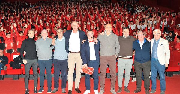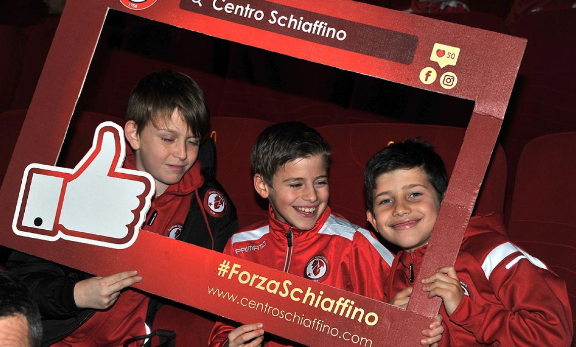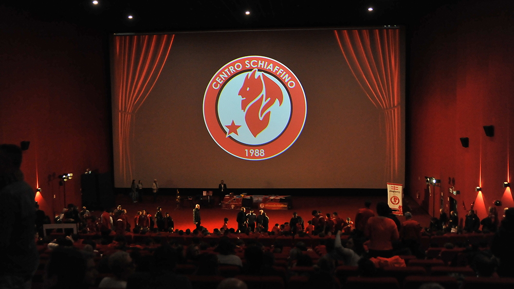 Una gigantesca sala tutta rossa, gioiosamente invasa - per una notte - da una moltitudine festante di casacche rosse anch'esse. L'effetto wow di cinema vero, quello del Multisala Le Giraffe di Paderno Dugnano, e di un emozionante countdown che prelude a una serata di festa. Quella della famiglia Centro Schiaffino.