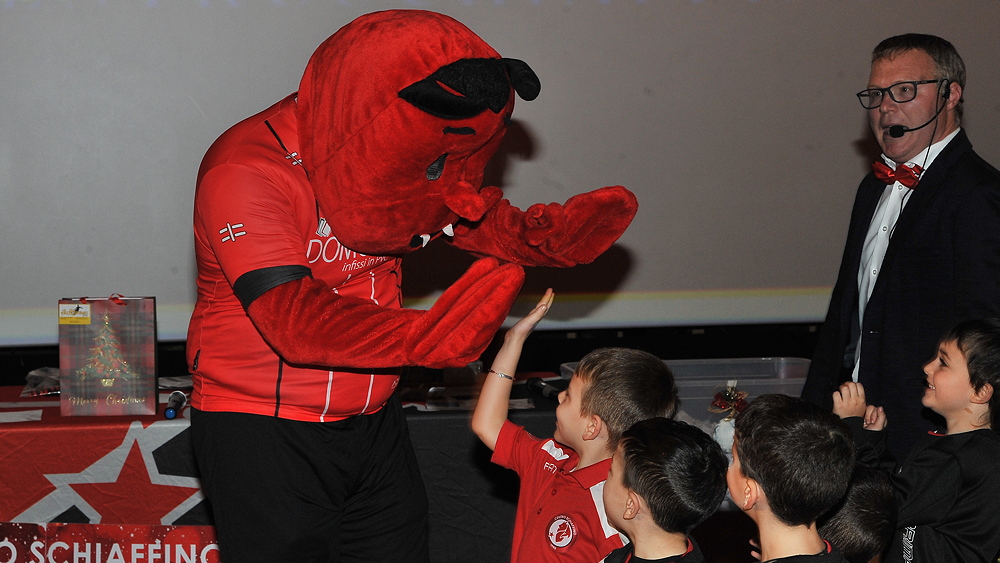Lunedì 16 dicembre non è mancato nulla alla festa di Natale della società di Calderara, dall'emozione all'intrattenimento, tutto accomunato da un'unica grande passione impersonata da un Alessandro Buschi ancora una volta "anchor man" e mattatore della serata. Buschi indossa il papillon rosso e si trasforma in un conduttore d'eccezione, assistito dalle vallette - Anita e Aurora - e offrendo il microfono per il primo intervento della serata, quello del presidente rossonero Roberto Romanò: «Ogni volta c'è sempre una grande emozione nel vedere di fronte a me questo muro rosso quando ci ritroviamo in prossimità del Natale. Ci sono un paio di parole che mi sono venute in mente pensando a questa sera. Sono scontate, forse, ma riflettono bene quello che siamo, e quello che facciamo. Per questo invito tutti a ricordarle sempre.