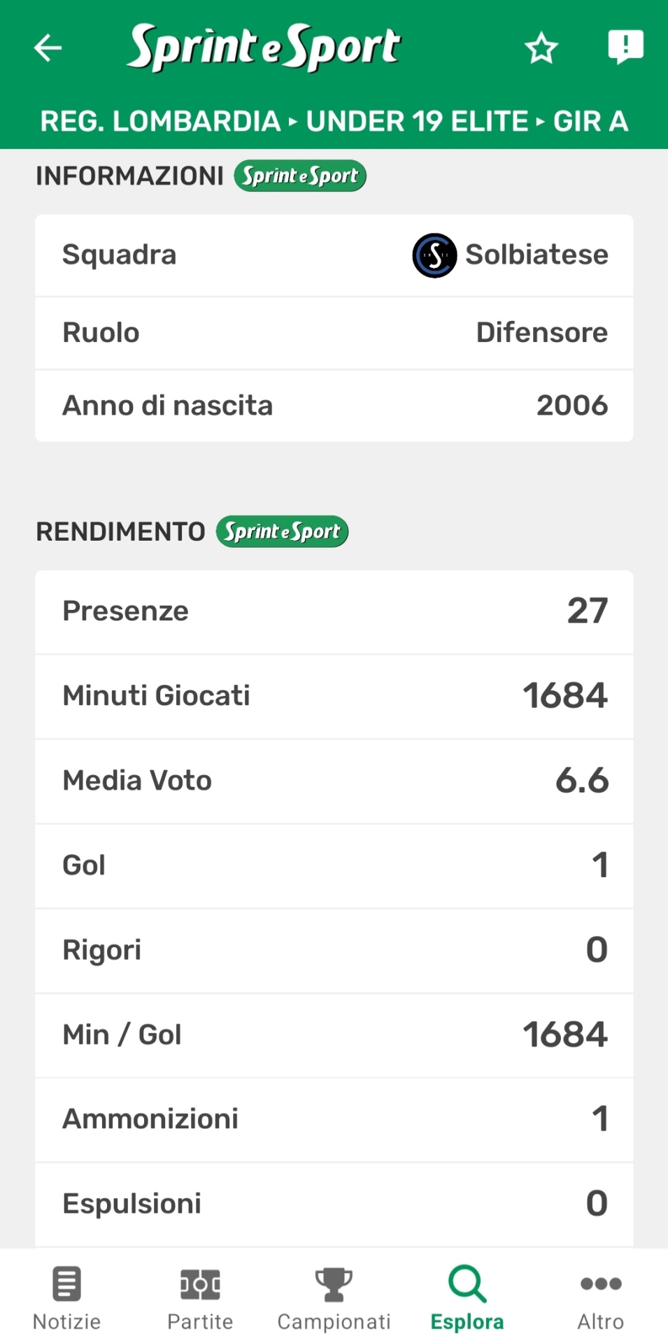 Le statistiche di Mirko Bosisio relative alla stagione appena conclusa. Clicca QUI per scaricare l'app e seguire la tua squadra