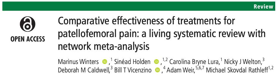 Winters M, Holden S, Lura CB, et al. Comparative effectiveness of treatments for patellofemoral pain: a living systematic review with network meta-analysis. British Journal of Sports Medicine Published Online First: 26 October 2020.