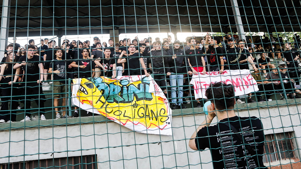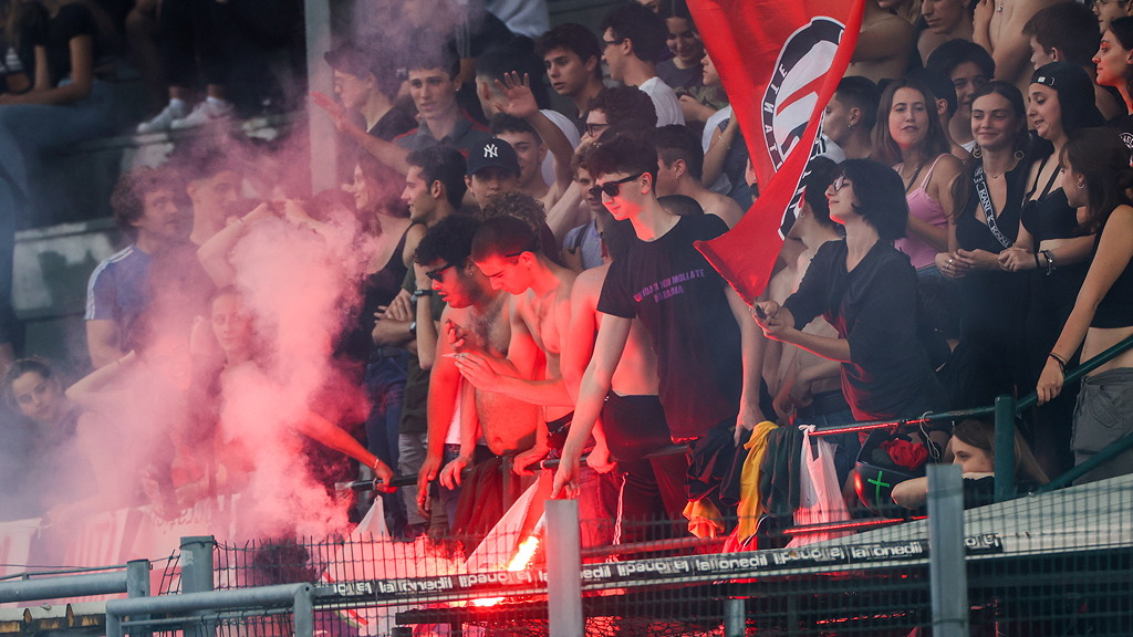 Come detto, lo spettacolo è stato in campo ma anche e soprattutto sugli spalti. La rivalità tra le due scuole, speziata e insaporita anche da una mantecatura di ideologia politica, è totale. Ciò che si vede normalmente sui campi di periferia è roba da Orsetti del cuore contro Mini Pony rispetto a quanto ammirato venerdì. Le due frange sono vicine come fiamma ossidirica e azoto liquido. Non mancano gli sfottò, le provocazioni, le bandiere rubate e rovesciate.
