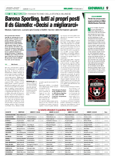 Due pagine piene di approfondimenti e temi dalla delegazione cittadina, con uno sguardo costantemente acceso sulla tabella allenatori sempre in aggiornamento nel numero di Sprint e Sport in edicola da lunedì 18 luglio. Di seguito i temi trattati per le giovanili provinciali di Milano.