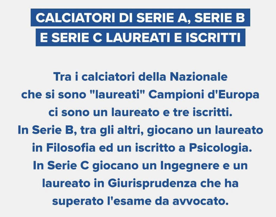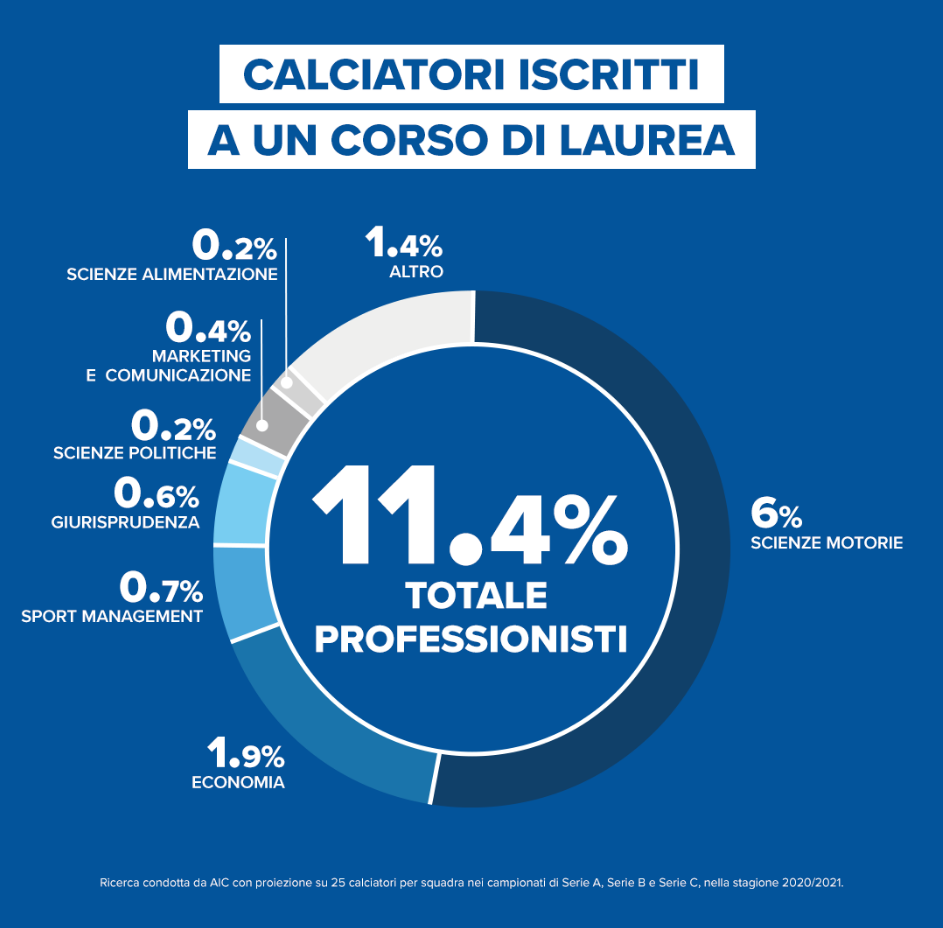 La Serie A ha una percentuale di calciatori laureati pari al 2% del totale. Atleti che hanno puntato equamente sulla formazione universitaria in Economia e su quella in Scienze Motorie.