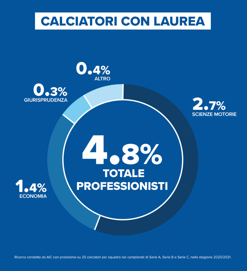 Studiare e fare il calciatore professionista è possibile. Lo dimostrano i dati dell’indagine AIC. Oggi il 4,8% dei calciatori di Serie A, B e C è laureato. Un dato molto cresciuto nel corso degli ultimi anni. Analizzando le singole categorie, tuttavia, si possono trarre ulteriori considerazioni rilevanti.
