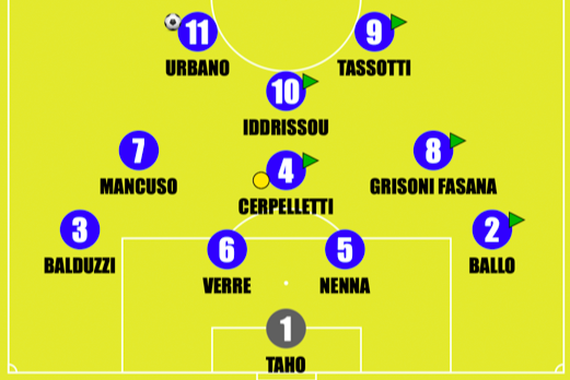 Mancuso 6.5 Gioca a sinistra per dare spazio a Grisoni Fasana dall'altra parte, e come al solito si dimostra uno dei più attivi. Nel primo tempo spreca una grande chance per l'1-1, è vero, ma è un errore che non macchia un'altra prestazione generosa, qualitativa e quantitativa. Non molla mai e si rende utile in ogni zona, entrando pure nel gol di Urbano.