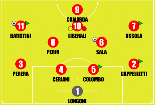 Cappelletti 6.5 Solita spinta, solita spina offensiva che parte da lontano. Combina bene con Perin e con l'esterno alto, che sia Ossola o Batistini non fa differenza. Fuori nella seconda parte della ripresa per questioni di equilibrio, aveva dato tantissimo come sempre.