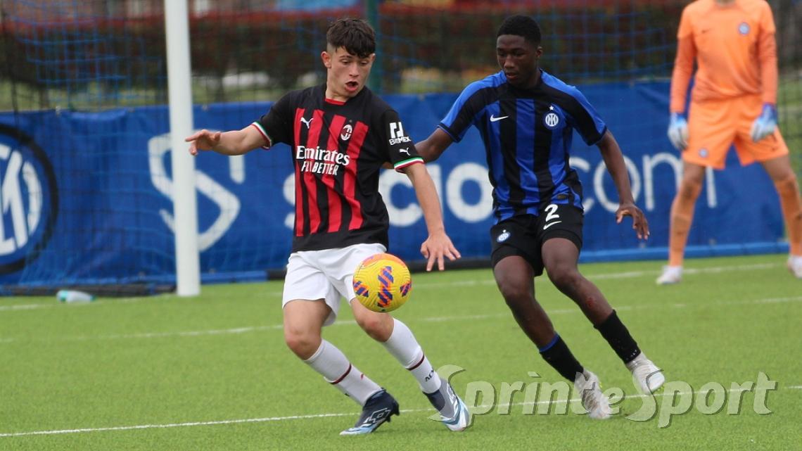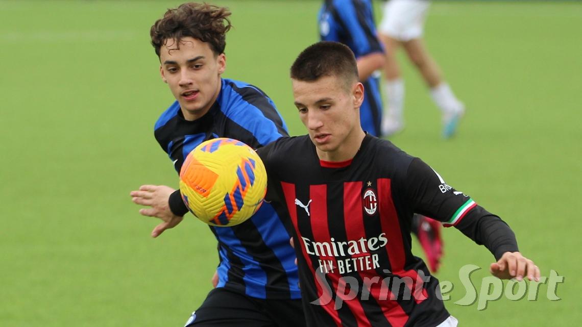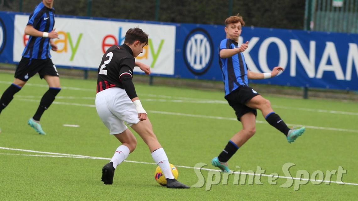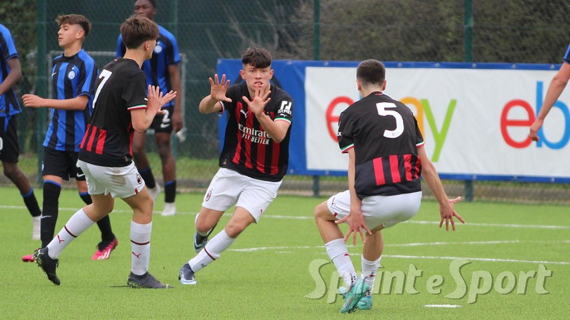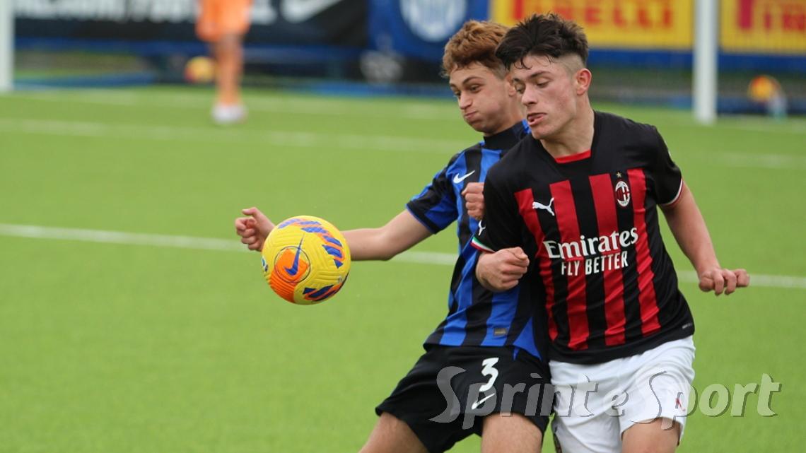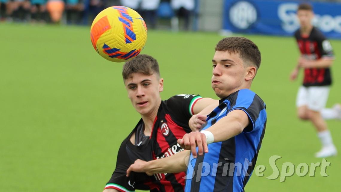 È stato forse il derby più palpitante di quest'anno. Un primo tempo clamoroso con 16 occasioni totali, un gol segnato - quello di Simone Batistini, di testa, su cross dalla sinistra di Mattia Liberali - e un cartellino rosso, allo stesso Liberali, che ha costretto il Milan a giocare tutto il secondo tempo con un uomo in meno. L'Inter ci ha provato in ogni modo, trascinata dalle giocate di un Jamal Iddrissou in forma smagliante e dall'intelligenza tattica di Davide Balduzzi, jolly preziosissimo della banda Solivellas: il forcing nerazzurro nella ripresa, però, si è scontrato contro un Milan coriaceo, organizzato e capace di colpire in contropiede con una giornata incredibile di Francesco Camarda, il gioiello del vivaio rossonero, che dopo una cavalcata palla al piede di 50 metri ha avuto la lucidità per servire capitan Emanuele Sala, bravo a raddoppiare. Che giocata quella del numero 9 rossonero, capocannoniere del Girone B con 17 gol in 16 partite da sotto età (CLASSIFICA MARCATORI): recupero palla di Albè e palla raccolta sulla propria trequarti, galoppata inarrestabile evitando la scivolata di Affronti e lasciando sul posto Nenna prima di scaricare al centro al proprio capitano per il 2-0. Gli sforzi interisti si sono concretizzati a 4 minuti dalla fine con il 2-1 di Nicolò Urbano che ha riacceso le speranze nel finale: il Diavolo di Simone Baldo però ha resistito agli assalti finali, portando a casa i tre punti e centrando la qualificazione alle fasi finali con due giornate d'anticipo. Dopo la sosta, contro l'Udinese, potrebbe arrivare anche il primo posto matematico. L'Inter, invece, è praticamente certa del terzo posto e per arrivare agli ottavi dovrà passare dai playoff.