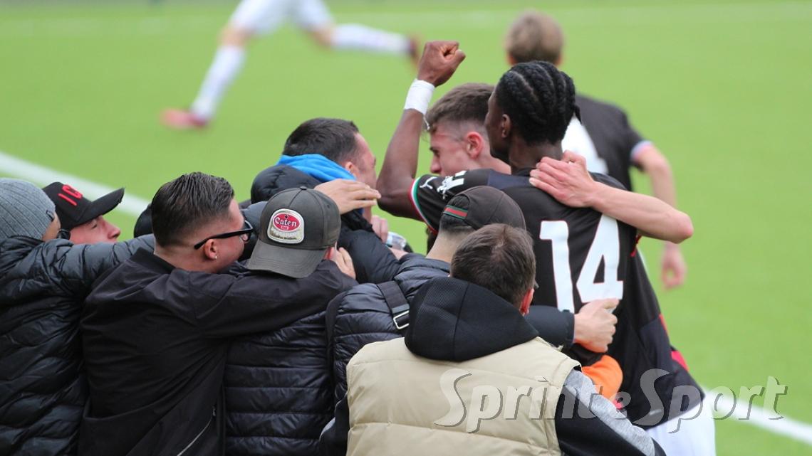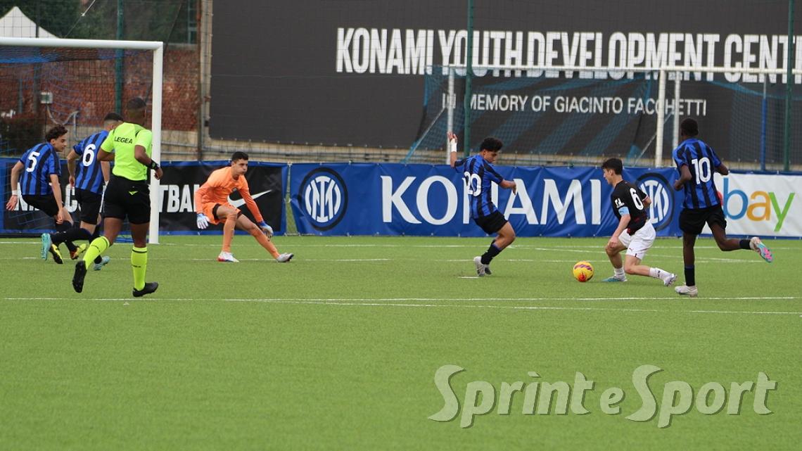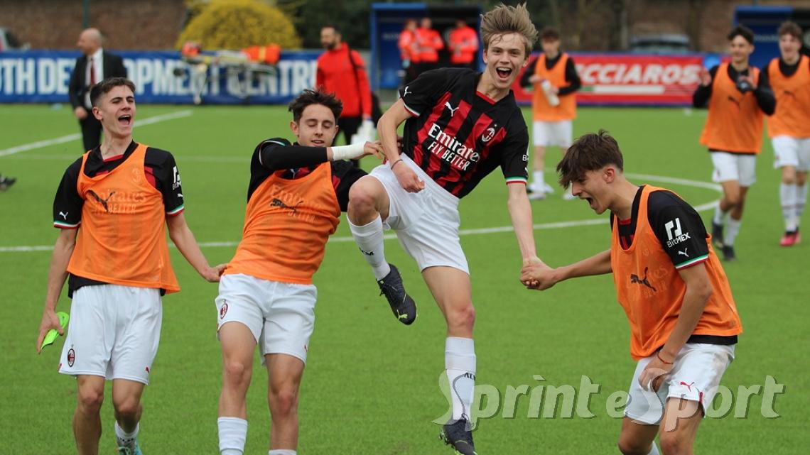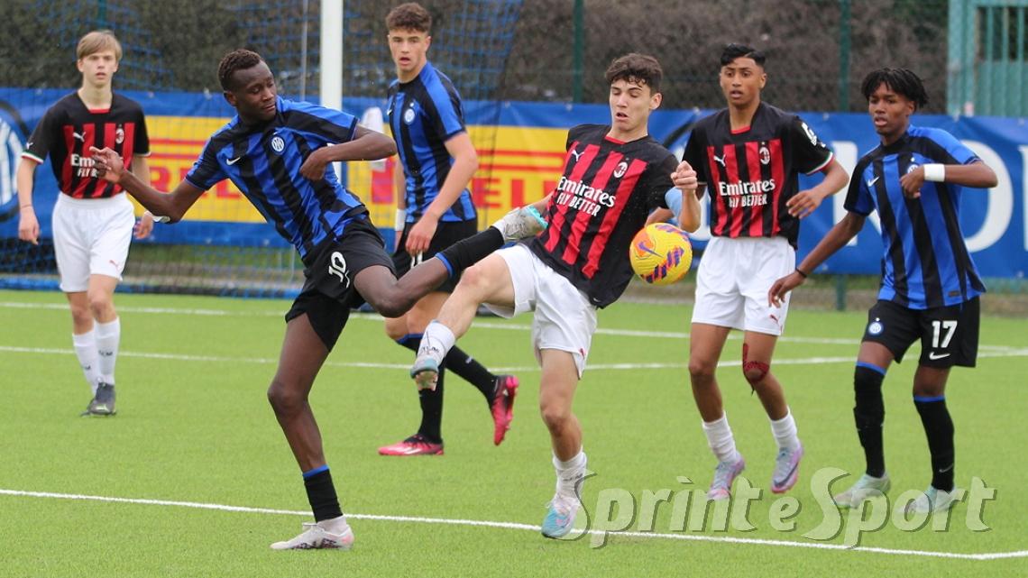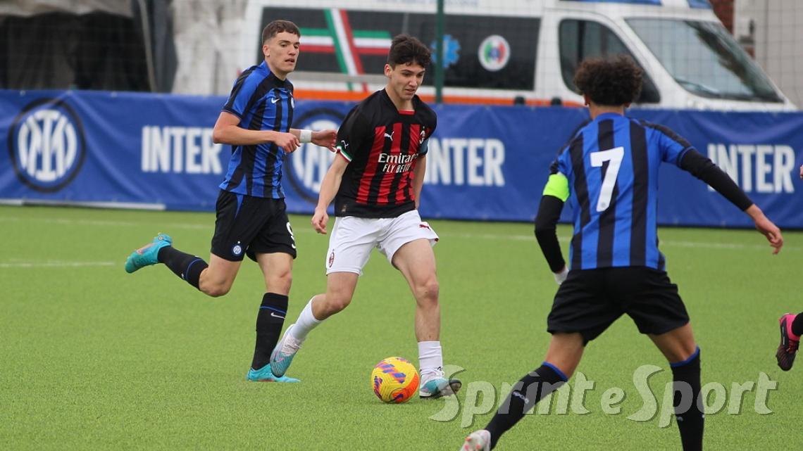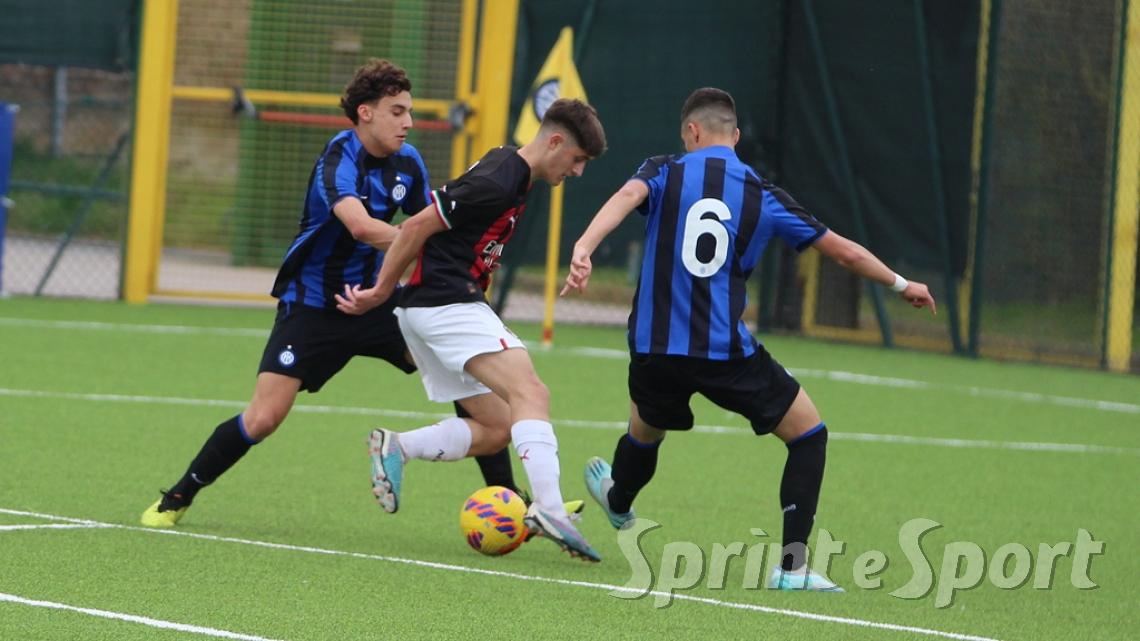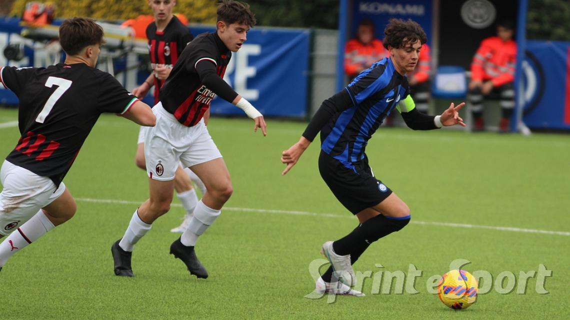 È stato forse il derby più palpitante di quest'anno. Un primo tempo clamoroso con 16 occasioni totali, un gol segnato - quello di Simone Batistini, di testa, su cross dalla sinistra di Mattia Liberali - e un cartellino rosso, allo stesso Liberali, che ha costretto il Milan a giocare tutto il secondo tempo con un uomo in meno. L'Inter ci ha provato in ogni modo, trascinata dalle giocate di un Jamal Iddrissou in forma smagliante e dall'intelligenza tattica di Davide Balduzzi, jolly preziosissimo della banda Solivellas: il forcing nerazzurro nella ripresa, però, si è scontrato contro un Milan coriaceo, organizzato e capace di colpire in contropiede con una giornata incredibile di Francesco Camarda, il gioiello del vivaio rossonero, che dopo una cavalcata palla al piede di 50 metri ha avuto la lucidità per servire capitan Emanuele Sala, bravo a raddoppiare. Che giocata quella del numero 9 rossonero, capocannoniere del Girone B con 17 gol in 16 partite da sotto età (CLASSIFICA MARCATORI): recupero palla di Albè e palla raccolta sulla propria trequarti, galoppata inarrestabile evitando la scivolata di Affronti e lasciando sul posto Nenna prima di scaricare al centro al proprio capitano per il 2-0. Gli sforzi interisti si sono concretizzati a 4 minuti dalla fine con il 2-1 di Nicolò Urbano che ha riacceso le speranze nel finale: il Diavolo di Simone Baldo però ha resistito agli assalti finali, portando a casa i tre punti e centrando la qualificazione alle fasi finali con due giornate d'anticipo. Dopo la sosta, contro l'Udinese, potrebbe arrivare anche il primo posto matematico. L'Inter, invece, è praticamente certa del terzo posto e per arrivare agli ottavi dovrà passare dai playoff.