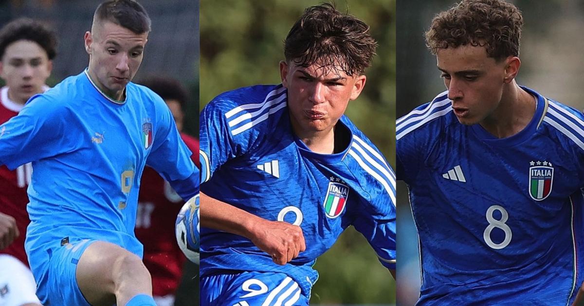 ITALIA UNDER 16 • Francesco Camarda, Mattia Mosconi e Alessandro Di Nunzio: i tre Azzurri a segno contro l'Ungheria (foto figc.it)