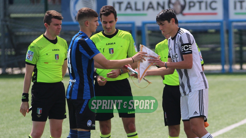 ATALANTA-JUVENTUS UNDER 16 • I due capitani, Niccolò Gariani e Francesco Verde, agli ordini di Andrea Migliorini della Sezione di Verona