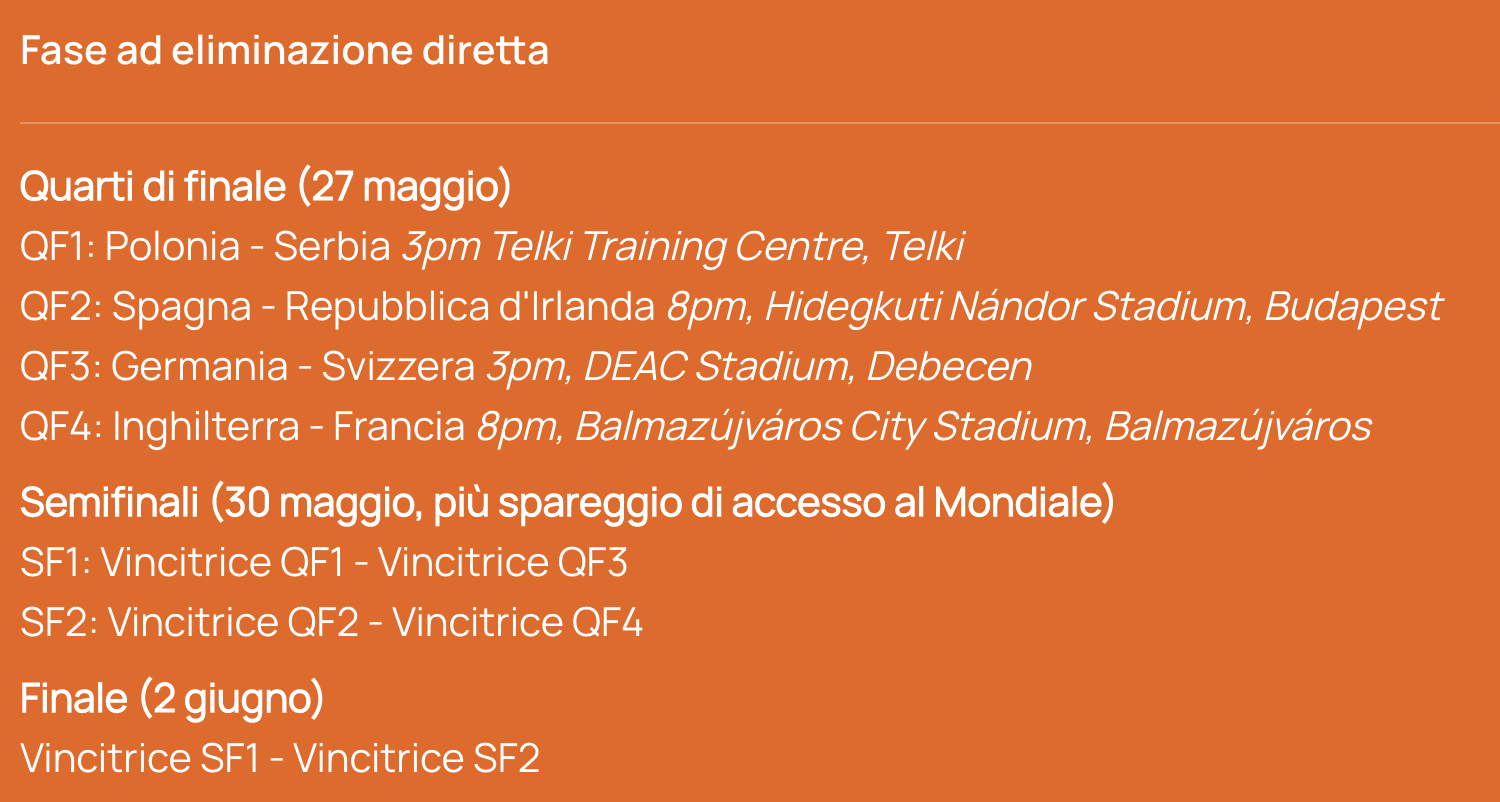ITALIA (4-1-3-2): Mascardi; Magni (11’ st De Pieri), Sadotti, Bassino, Cocchi (24’ st Pagnucco); Riccio; Mannini, Romano, Liberali (33’ st Rao); Fini (1’ st Ragnoli Galli), Ravaglioli. A disp. Martinelli, Mendicino, Ramaj, Vezzosi. All. Corradi.
