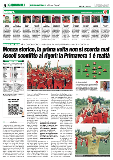 1 settembre 1912, 29 maggio 2022, 3 giugno 2023. Tre date, tre storie. La prima sarà ricordata per aver dato alla luce quello che oggi conosciamo come Associazione Calcio Monza: dove tutto ebbe inizio. La seconda racconta della storica promozione in Serie A, culminata con l’indimenticabile 4-3 nei 120 minuti dell’Arena Garibaldi di Pisa. La terza racchiude dentro sé un po’ di tutto: dolore, rabbia, coraggio, grinta, sangue freddo. E infine lacrime, ma questa volta solo di gioia. Si perché per il Monza si tratta di una data storica, la seconda nel giro di un anno. Roba che rimarrà per sempre negli annali del club di Silvio Berlusconi: perché il piccolo Monza è diventato grande, perché in via dei Ragazzi del ’99 arriveranno le varie Inter, Milan, Juventus e Roma, perché Alessandro Lupi ha portato i biancorossi in Primavera 1. La Serie A del calcio giovanile, la crème de la crème.
