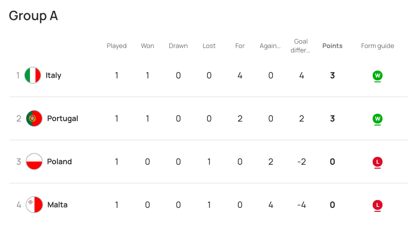 Gruppo A: Malta, Portogallo, Polonia e ITALIA