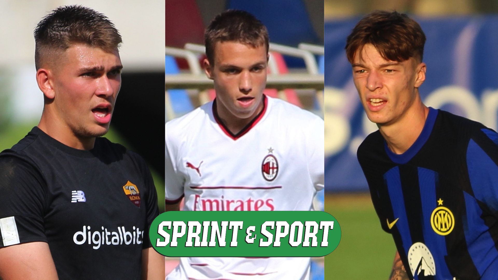 ITALIA UNDER 18 • I tre classe 2006 chiamati da Bernardo Corradi: a sinistra il portiere della Roma Renato Marin Bellucci, al centro il terzino del Milan Vittorio Magni, a destra l'attaccante dell'Inter Matteo Spinaccè