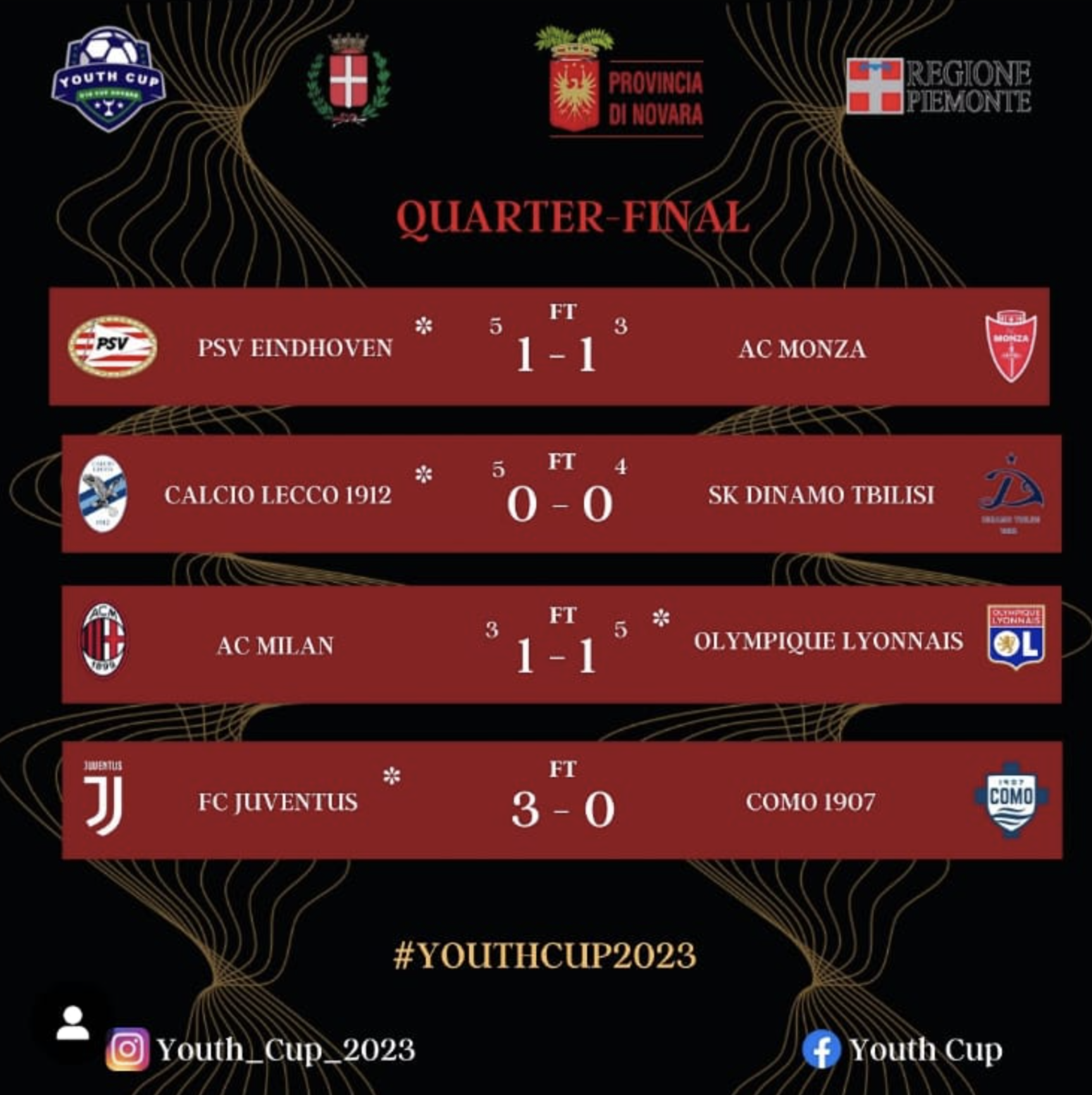 Ci sono poi le squadre straniere, con PSV Eindhoven e Lione che si prendono gli altri due posti in semifinale insieme a Juventus e Lecco. Gli olandesi battono il Monza ai rigori dopo l'1-1 dei tempi regolamentari, i francesi fanno la stessa identica cosa contro il Milan di Simone Baldo, a cui non basta l'iniziale 1-0 di Pisati per guadagnarsi la semifinale.