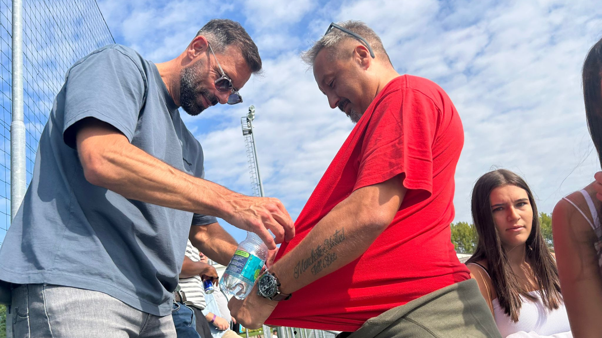 Poco prima del fischio d'inizio si avvicina un uomo, probabilmente un papà, appassionato di calcio fino al midollo. Indossa una maglia rossa del Manchester United risalente ai primi anni 2000, un reperto storico di cui va orgoglioso e gli occhi, che non mentono mai, lo confermano. Gli stessi occhi, poco dopo, raccontano felicità, quasi estasi. «È un onore», dice quasi balbettando, poi si inchina come a volergli lucidare il piede destro. Tira fuori un pennarello indelebile nero: «Me la fai una firma?». Quindi gli porge il braccio sinistro, c'è un tatuaggio di circa venti centimetri: "Manchester United til i die", Manchester United fino alla morte. Fa lo stesso con la gamba sinistra, dove è impossibile non notare lo stemma dei red devils. Infine la foto di rito, i saluti - anche questi commossi - e, finalmente, il fischio d'inizio.