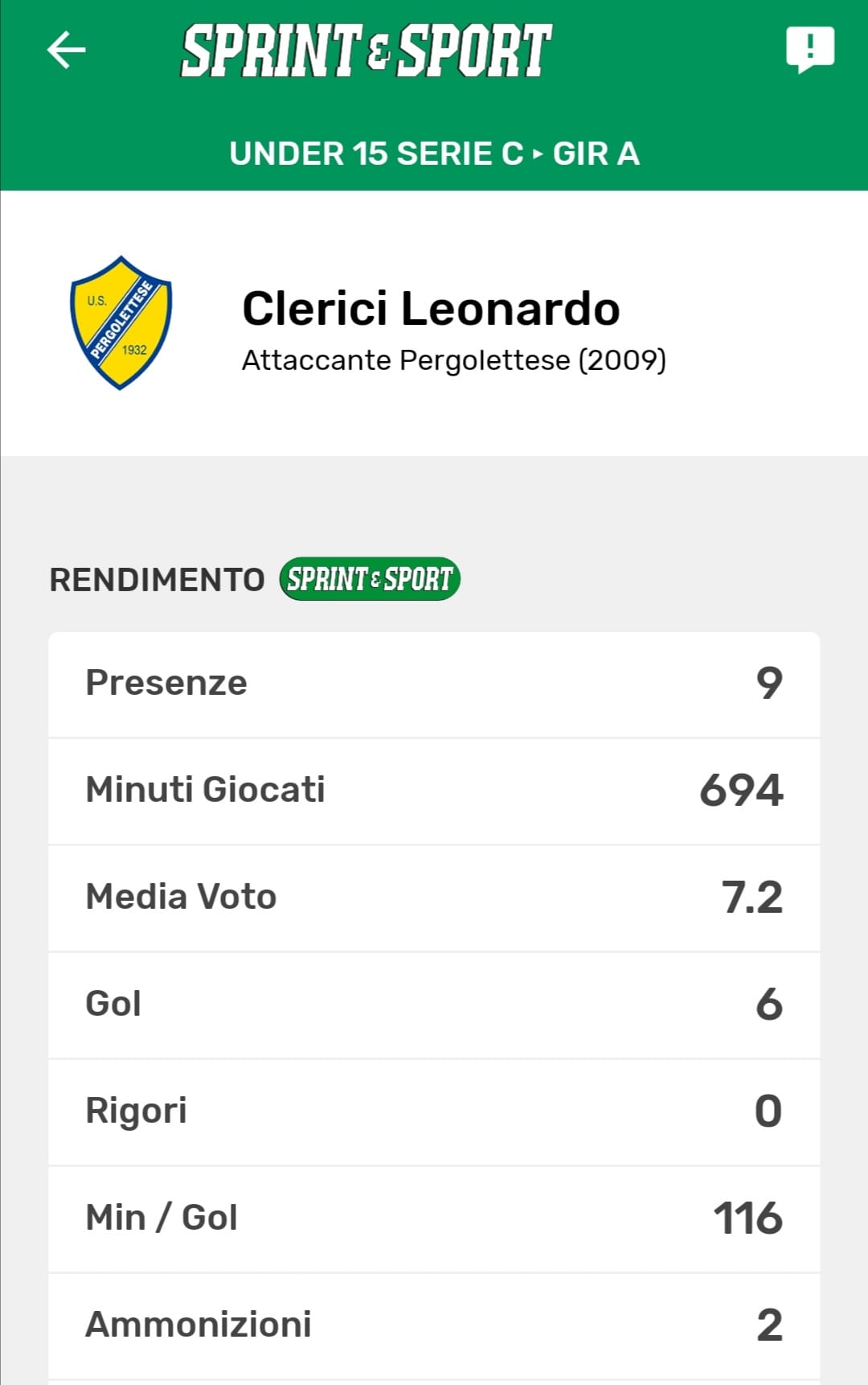 15 anni da compiere il prossimo 6 aprile, è alla Pergolettese da pochi mesi e ha già conquistato tutti. Arrivato nell'ultimo mercato estivo dal Sangiuliano City, ha vestito le maglie dell'Atletico CVS, della Riozzese per 5 anni e prima ancora del Real Melegnano, la squadra del paese in cui ha cominciato a tirare i primi calci al pallone e in cui vive con i suoi genitori e suo fratello. E la cinquina di domenica, la prima della sua vita nel calcio a 11, è proprio per loro, per papà Alessandro e mamma Patrycja: «La voglio dedicare alla mia famiglia», le parole di un ragazzo che ha bene in testa quali sono i suoi affetti più cari. Da sempre attaccante, può giocare sia come esterno che come punta centrale e la situazione tattica in cui si esprime meglio è quella di seconda punta: non a caso i suoi punti di riferimento sono Federico Chiesa e Paulo Dybala. Il suo allenatore, Luca Vaccari, lo sa bene e lo sta gestendo nel migliore dei modi: come lo hanno cullato in maniera egregia dai suoi precedenti tecnici, soprattutto Valerio Gandelli e Carmelo Fontana ai tempi dell'Atletico CVS. Che lo hanno plasmato come un attaccante moderno, un calciatore che può ricoprire tutti i ruoli del reparto offensivo, un prospetto futuro che ha raggiunto forse il momento migliore della sua ancora breve carriera e che non ha nessuna voglia di fermarsi. Continuando a imitare Messi e Ronaldo, Pruzzo e Klose, Haaland e Lewandowski: e proprio con il bomber ex Bayern e oggi al Barcellona c'è una curiosa similitudine. Clerici, infatti, è mezzo italiano e mezzo polacco da parte di mamma originaria di Lodz, una città a un centinaio di chilometri di distanza da Varsavia nella quale Leonardo fa ritorno tutti gli anni per salutare nonni, zii e parenti. E la prossima occasione sarà anche quella in cui il bomber racconterà loro di questi 5 gol e di questa prestazione incredibile. Celebrata con la sua esultanza caratteristica, un balletto pensato a inizio anno con il suo grande amico fraterno Stefano. Che è anche il suo primo tifoso, e che non vede l'ora di esultare di nuovo per uno dei suoi gol.