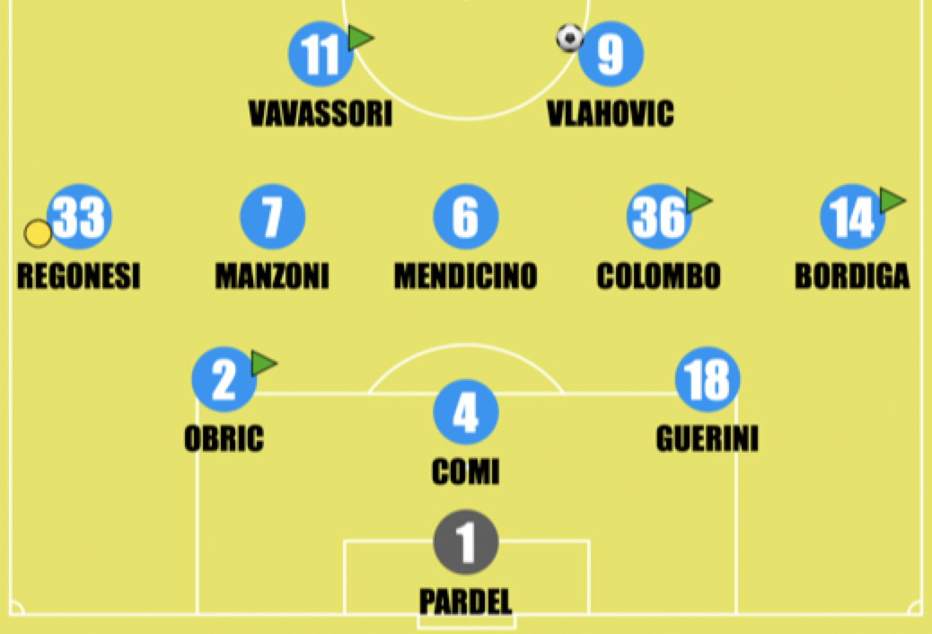 AMMONITI: Bovo (I), Aidoo (I), Bonanomi (A), Regonesi (A).