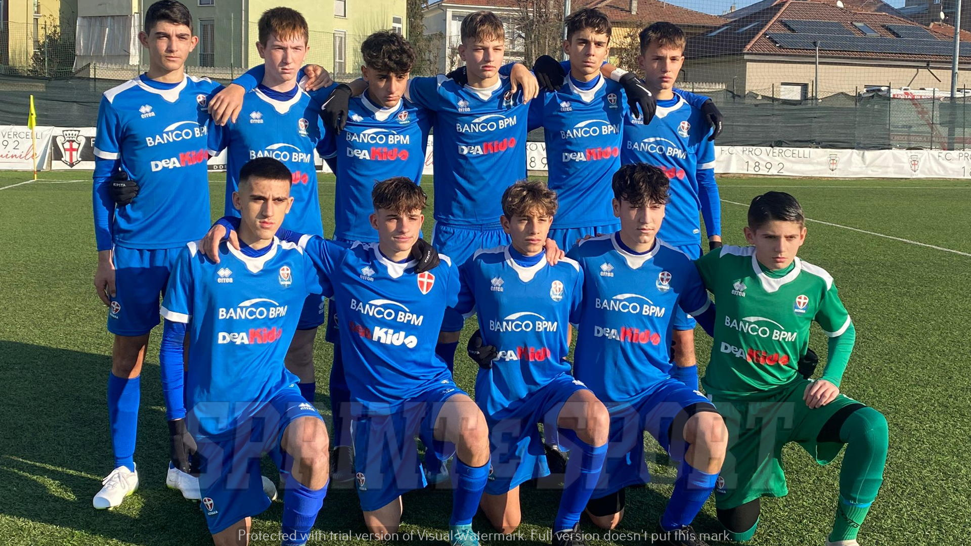 Dopo aver subito il secondo pareggio della sfida, la Pro Vercelli alza la linea difensiva la propria squadra, stanziandosi nella metà campo rivale. La risposta novarese passa da una difesa grintosa della propria porta e dai lanci di Bari e Musone per le punte. Alla mezz’ora tutti i calciatori in campo danno fondo alle proprie energie. I ritmi e il pressing delle due squadre si fanno sostenuti, con i due diversi stili di gioco che cozzano e si scontrano. Nonostante la carica agonista e il tipo di partita, la gara rimane corretta e molto vivace, con pochi falli che rompono lo scorrimento del gioco. Altre emozioni al 32’ dopo una fase combattuta, ma senza clamorose occasioni da gol. Su un altro calcio piazzato la Pro Vercelli si fa trovare pronta, combatte in mezzo all’area e trova la rete del 4-3. Ad appoggiare in rete è Mattia Samaritano in maglia diciannove, l’attaccante è stato rapido nel capire la traiettoria del pallone e anticipare tutti. Quando mandano solamente cinque minuti al triplice fischio, gli schemi saltano del tutto sia per i Leoni che per gli Azzurrini. I ritmi sono forsennati e le due formazioni le provano tutte per segnare e difendere la propria porta. Ci pensa poi Mattia Lo Porto a chiudere del tutto la gara con un pallonetto al bacio dopo essere stato lanciato in profondità dal proprio centrocampo. Il gol del 5-3 congela la gara arriva a due dal termine, in pieno recupero. Poco prima del fischio finale arriva anche un’espulsione fra le fila della squadra di casa. Sandrin ha infatti un battibecco con Jushy e il direttore di gara mostra all’undici della Pro il cartellino rosso. Non vi sono ulteriori colpi di scena, al triplice fischio il risultato è quindi di 5-3 per la Pro Vercelli di Mercuri, abile nello sfruttare i calci piazzati e nel rimanere mentalmente in gara dopo la rimonta subita. Ne esce sconfitta e con l’amaro in bocca il Novara, troppo passiva nel primo tempo e poco incisiva nelle marcature sulle palle alte, ma sicuramente pericolosa nella fase offensiva e grintosa nella doppia rimonta.