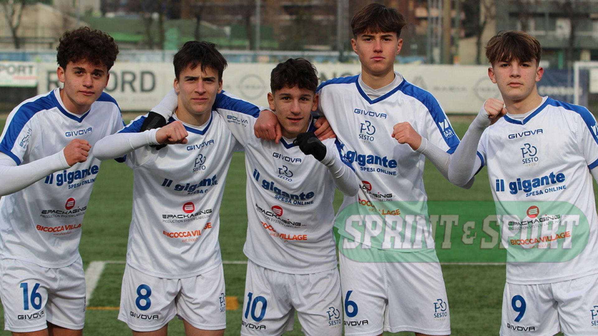 PRO SESTO UNDER 15 SERIE C • Da sinistra Simone, Farina, Menotti, Pozzi e Ponzo: cinque marcatori diversi nel 6-0 rifilato alla Pergolettese